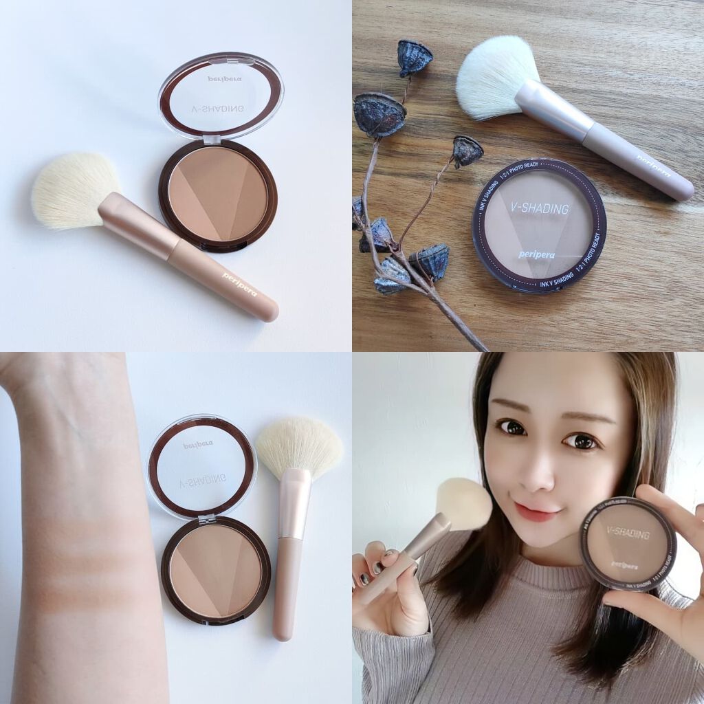 - ■肌色やシェーディング効果に合わせ自由に選べる2タイプのカラー構成 【#01 アーモンドブラウン】初心者にもトライしやすいナチュラルカラー。より自然なシェーディング効果を求める方にオススメ。 【#02 カカオブラウン】より深い色合いで立体感を演出するディープカラー。肌トーンが暗めな方や、しっかりとしたシェーディング効果を求める方にオススメ。 ■きめ細かいパウダー粒子 薄付きなのにしっかり密着 3色カラーで構成された「インクブイシェーディング」は、ブラシを使ってカラーをミックスし使います。パウダー粒子が細かくサラサラしているので、「塗ってる感」がなく、肌への密着度も抜群。粒子が細かいことで、色がぼかしやすく、自然な陰影が作れます。 ■使用頻度の高い色が先に無くならないよう こだわりの【1:2:1の黄金V字比率】 「インクブイシェーディング」はフェイスラインや鼻筋はもちろん、ヘアラインや鎖骨ラインの他、アイシャドウやアイブロウなど多様な使い方が可能。お財布に優しいプチプラ価格ながら、「お値段以上」の使いやすさと効果で10代の学生にも嬉しいアイテムです。