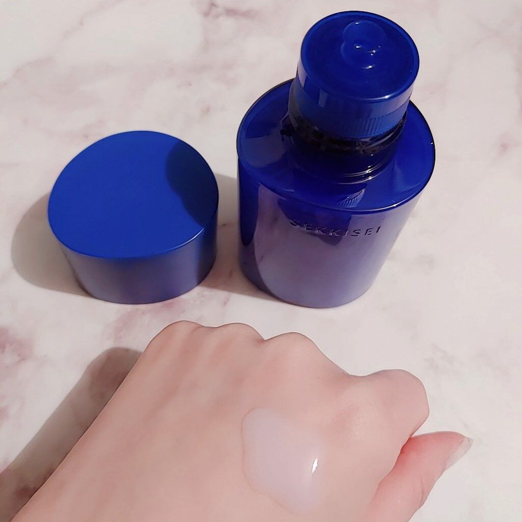 ブルーで雫みたいな形の蓋が特徴的な化粧水です。※写真忘れていました💦すみません。元々雪肌精は気になっていて、その中でも手が出しやすい価格だったので購入しました。白濁色で少しとろっとしたテクスチャーです。前はオルビスユードットの化粧水を使ってい...