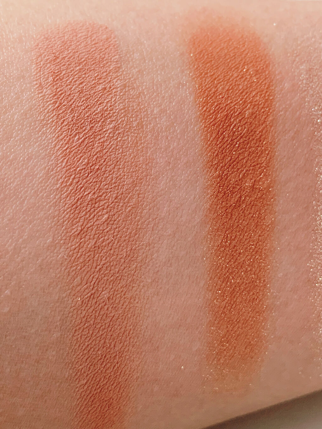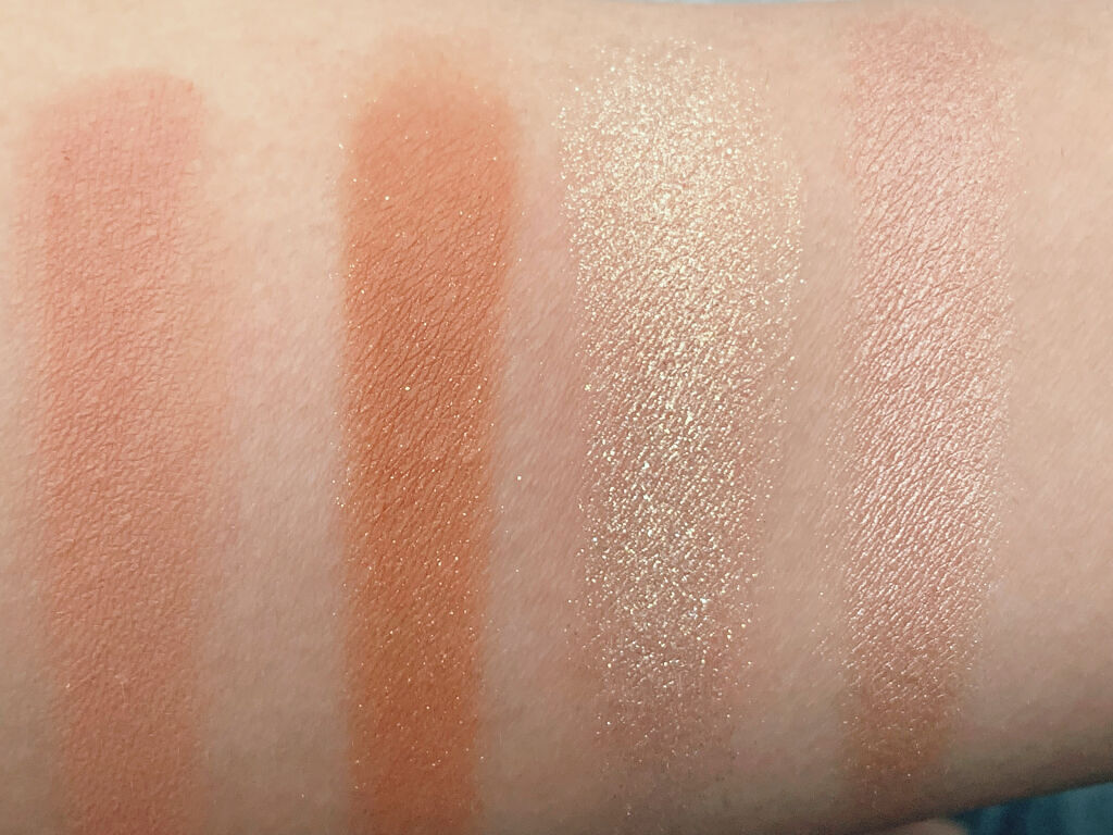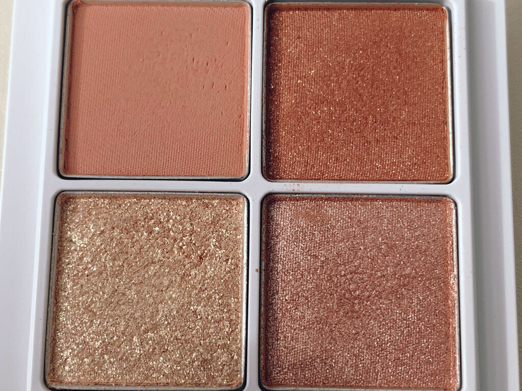 まぶたに塗った時のオレンジ感が強く発色します♡ 何色か混ぜてしっかり発色で濃いめのメイクができます♡ 左上(マットなオレンジ)…ベース 右上(オレンジ+ゴールドラメ)…メインカラー 左下(ゴールドラメ)…上まぶたの重ね付け、ぼかし 右下(コーラルラメ)…涙袋に使ってます!