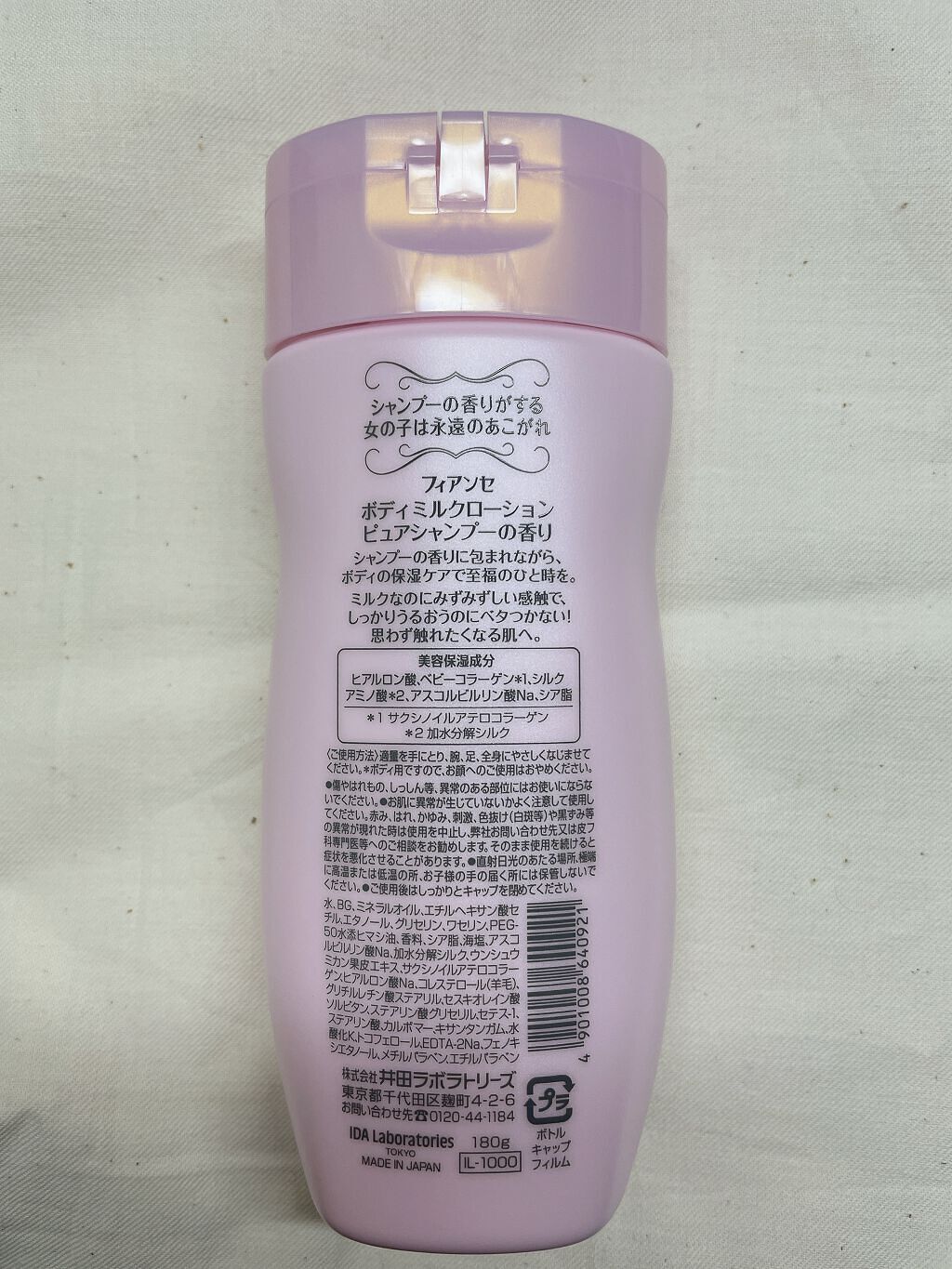 \\清潔感アップ♡//*フィアンセ*ボディミルクローション〔ピュアシャンプーの香り〕シャシプーの香りに包まれながらボテケアできるボディローション🫧美容保湿成分として☑︎ヒアルロン酸☑︎ベビーコラーゲン*1☑︎シルク☑︎アミノ酸*2☑︎アスコル...