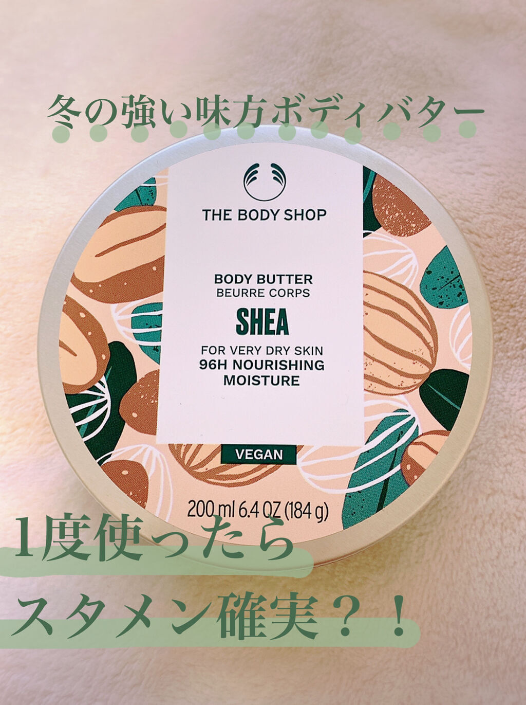 おすすめポイント 🤍香りが良い!気分は高級エステ🧖🏼♀️(私はシアを使用しています✨)🤍香りの種類は限定含め15種類程!🤍バターだから身体が冷えない🤍濃密な身体の潤いを持続、次の日もお肌すべすべ🤍200gの大容量だから贅沢に使える!🤍リラックスするからか使うとよく寝れました🛌🤍ヴィーガン認証の動物にまで優しい🤍パッケージは100%リサイクル 良いとこ凝縮のこのアイテム 使用方法はお風呂上がりスパチュラでボディバターを手に取る手の温度で軽く溶かして身体へ体温を使ってゆっくり伸ばしていく クリスマスギフトにも1年の自分へのご褒美にも最適なTHE BODY SHOPボディバター シア是非検討してみてください🙋🏼♀️✨