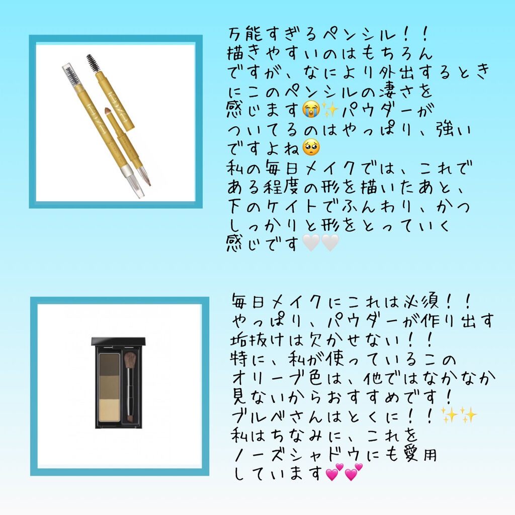 | アイブロウランキング第64位 | 前のものより眉尻がシャープに描けるようになったし、パウダーもボテっとつくことがなくなってめちゃくちゃ使いやすい | 詳細を見る |