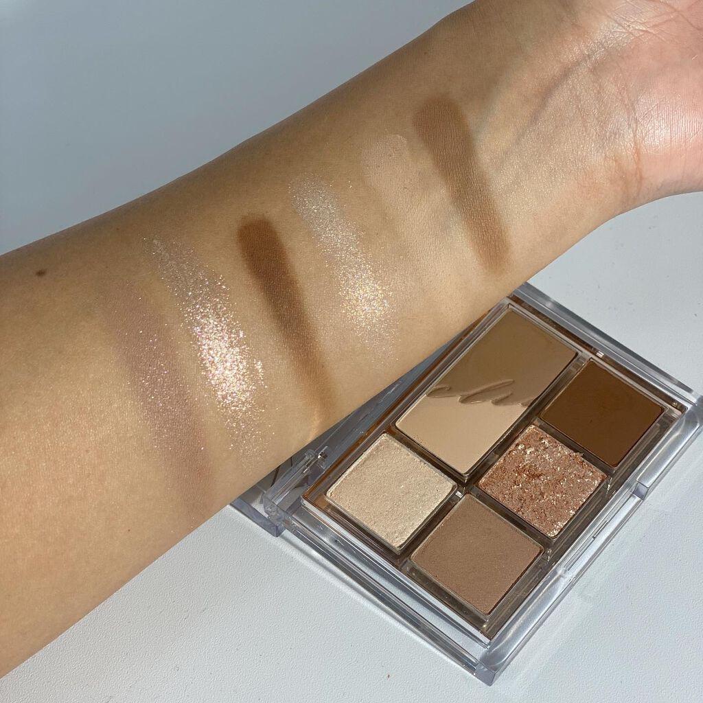 - 同系色陰影カラーと上品でクリアなグリッターの組み合わせの必要なカラーだけ詰め込んだミニアイパレット!