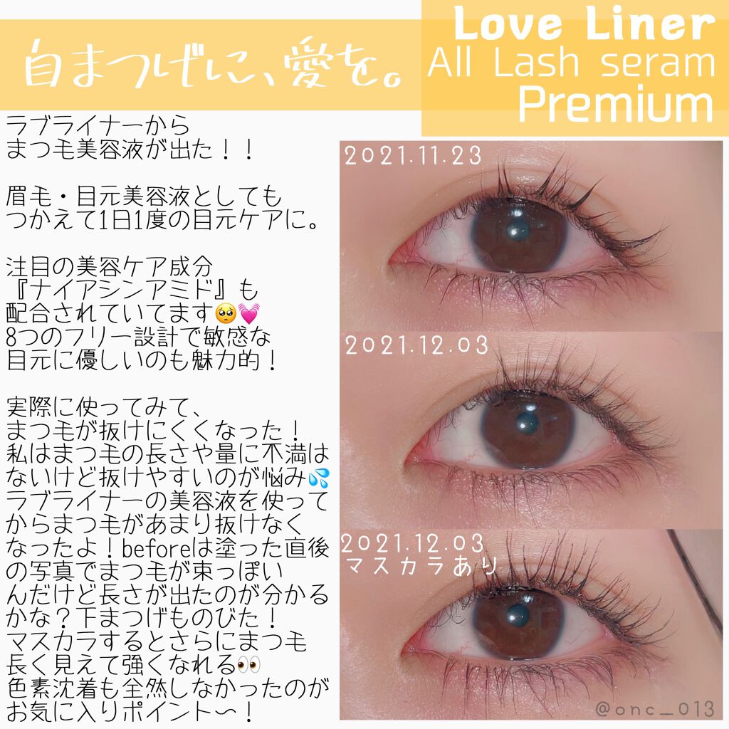 ...\美容液をマスカラ前に!?簡単束感まつげ/ラブ・ライナーオールラッシュセラムR<まつげ美容液>理想の毛周期に着目した処方でまつげ本来の美しさをサポート☝🏻全36種の濃密美容液成分配合で、傷んだまつげを集中補修してくれる👀刺激も感じにくく...