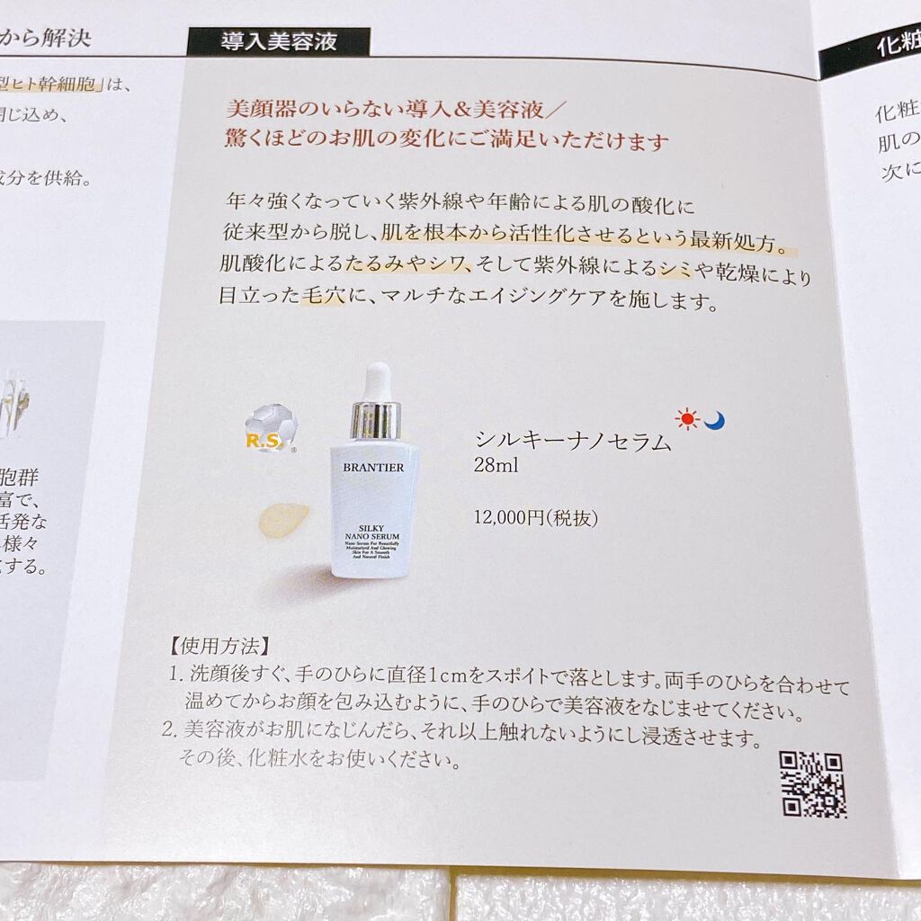 紫外線や年齢による肌の酸化に。マルチなエイジングケア、浸透型導入美容液を使ってみています🤗ブランティエシルキーナノセラム(導入&美容液)28ml13,200円浸透型の"ヒト幹細胞"を高配合している美容液です。洗顔後の肌に塗布します。同じく高濃...