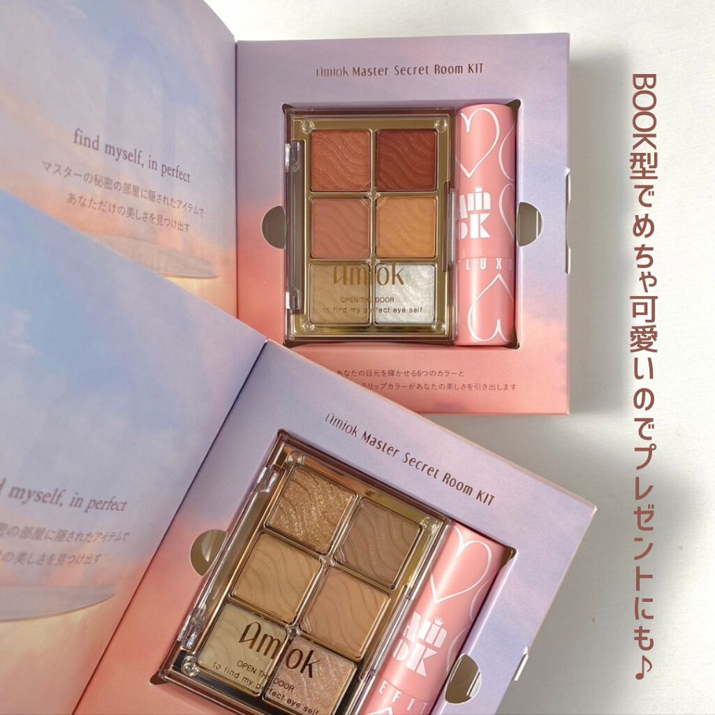 - 扉の中にはクレイタイプの6色アイシャドウパレットとプランプリップ。マスターシークレットルームキット1つでメイクアップが完成します。