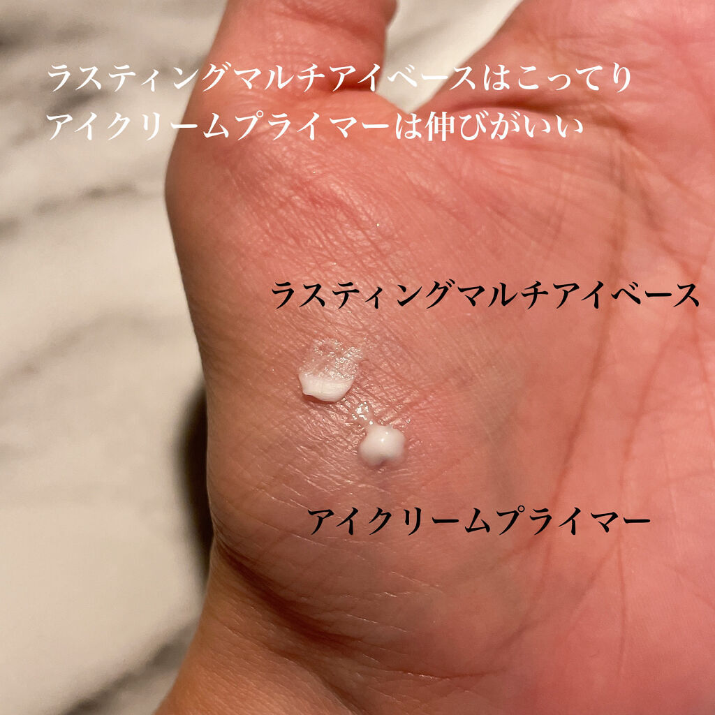 アイクリームプライマーは柔らかくて伸びがいいから使用量が微調整慣れるまで大変かも?日中のケアに期待したい方におすすめ ラスティングマルチアイベースWPはとにかくアイシャドウをヨレさせたくない!って方におすすめ コスパ抜群だし、これ使った日は二重に溜まりやすいアイシャドウも無事な気がする!