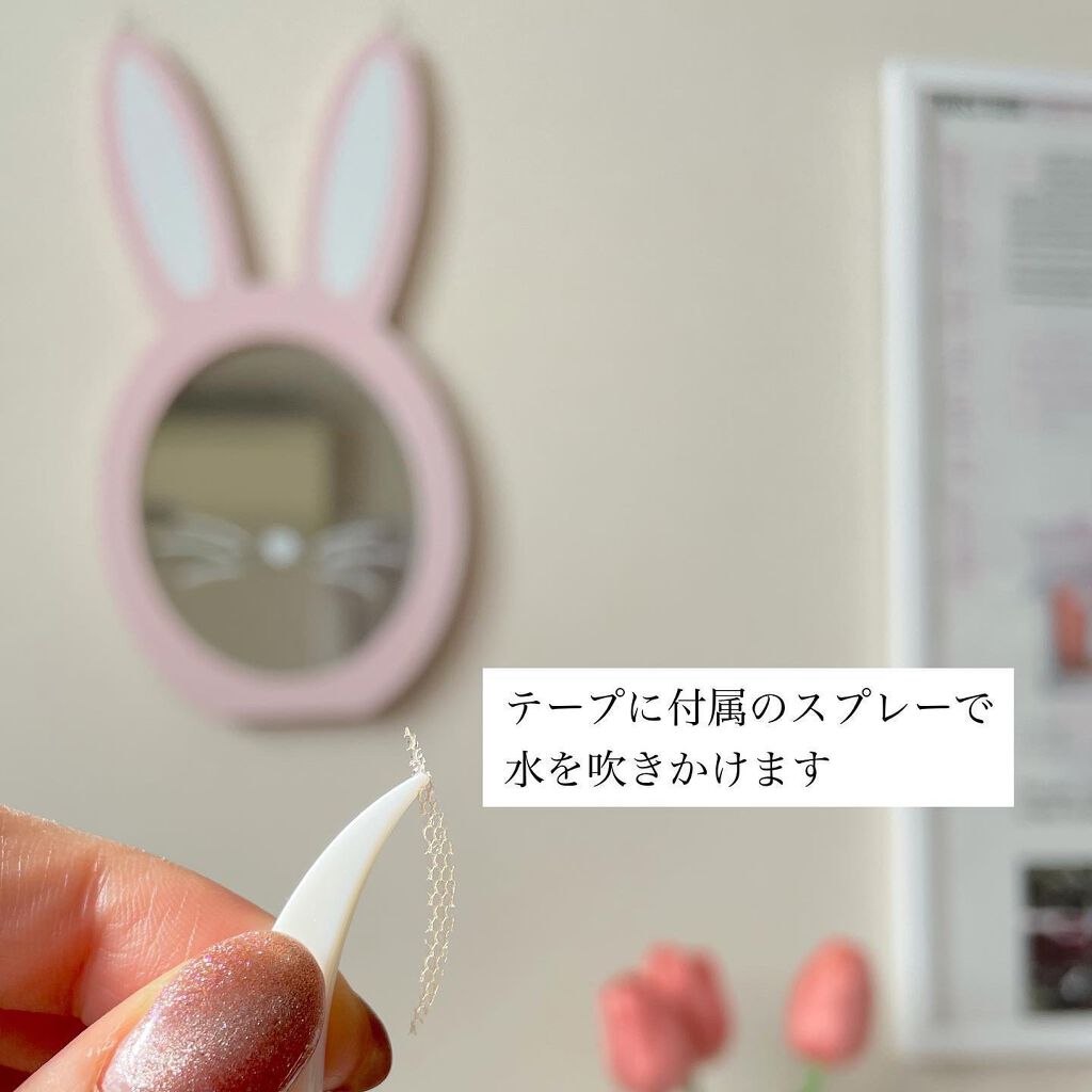 - メッシュテープに水を拭きかけて二重をつくる。乾くとテカらず、肌になじむので目立たない。メイクの上からも使用できる!
