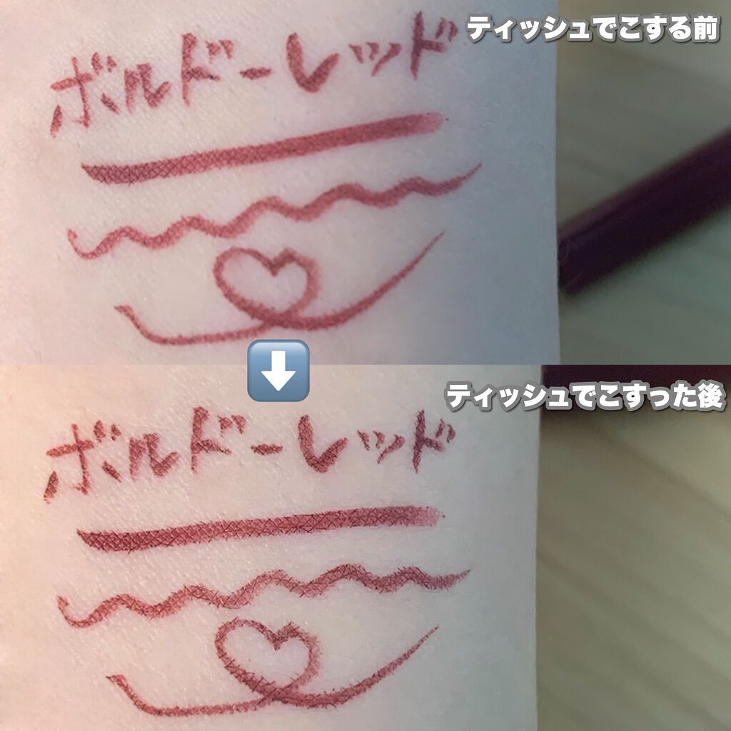 発色がよく、擦れにも強い印象。 落とす時はメイク落としを使えばキレイに落とせる。 カラーは、やや派手なほうかな… (ライン失敗すると目立ちやすいかも😅) よくも悪くも発色がしっかり、WPなので、ラインをキレイにひく力量が問題。