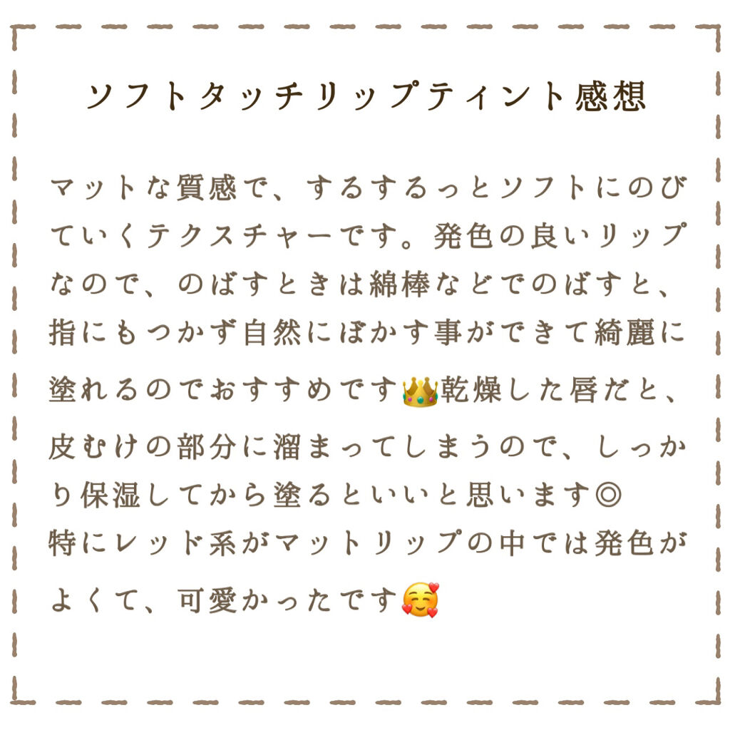 | 使用感は柔らかチップで口当たりが良く、角度もあり塗りやすいです♡ | 詳細を見る | |