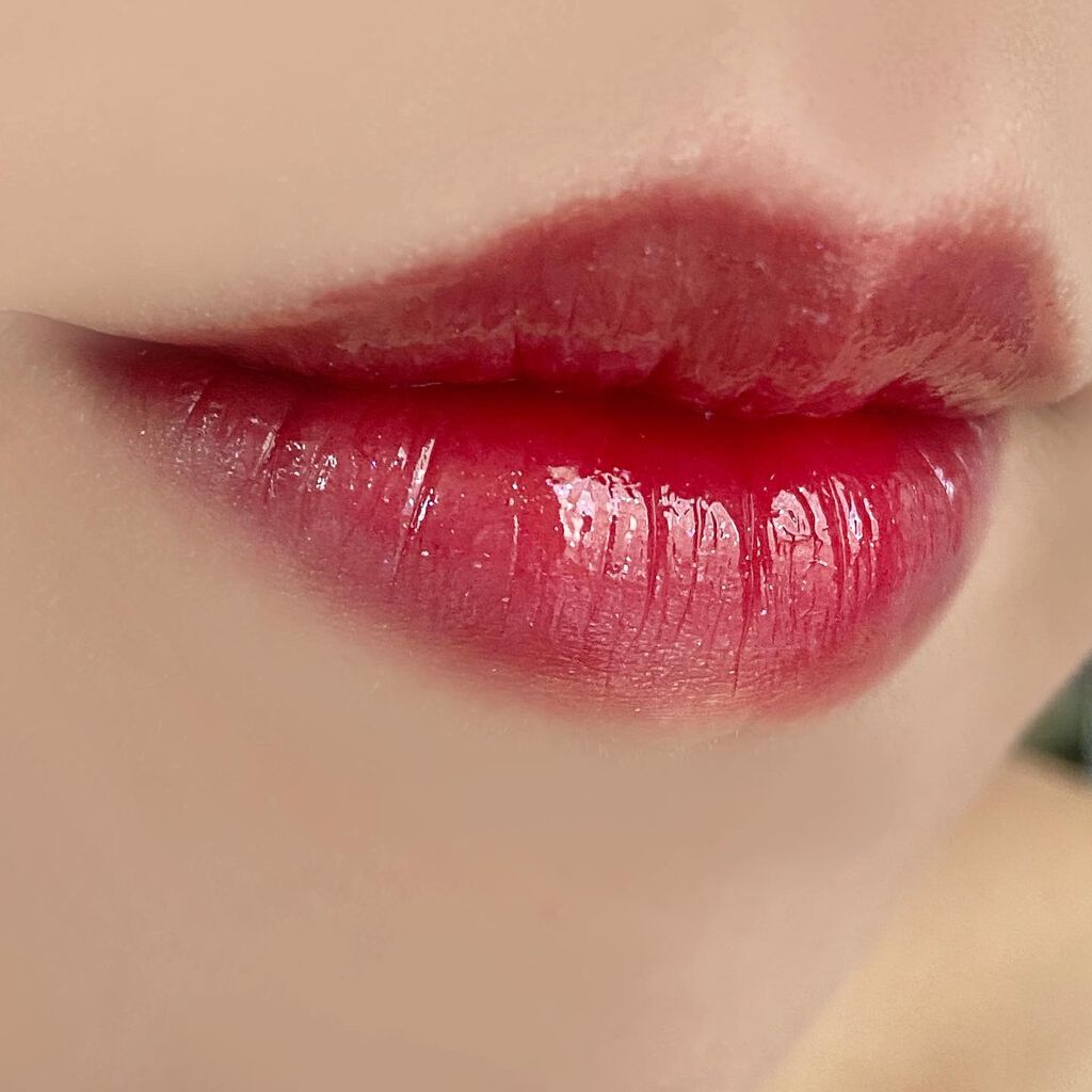 ラメがチラチラなベリーピンク💄 クリアで透け感のある発色なので #クリアウィンター さんにおすすめです✨ ティントなので食事をしてもかなり色残りがありますが、その分刺激を感じる時もあるので唇が強い方に! サロンにも置いていますので是非お試しください☆