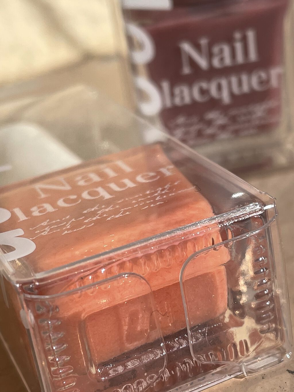 細かい繊維が入っていて、ただ塗るだけでも ひと手間かかったネイルに見えます🩰🪞 桃 と聞くと夏のイメージがあるけど、春からも使いたい 可愛い色味🌸🫧 画像は、jill leen.の上から 硬化するタイプの透明ジェルを重ねて ちゅるちゅるにしてます🎀 マット加工にしても可愛かった….ᐟ.ᐟ 他にも、りんごやあずき、さくらんぼなど… いろんなカラーがあるので、チェックしてみてください✓