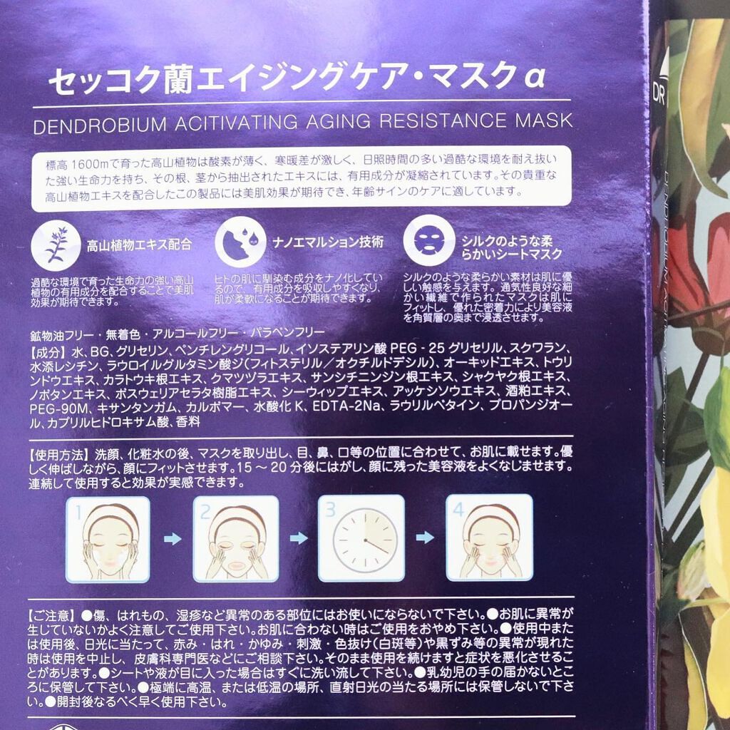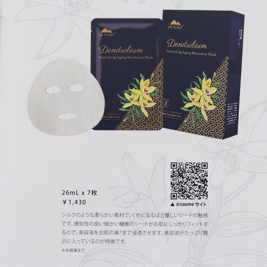 乾燥が気になる方ぜひ。 セッコク蘭マスク。封を開けると滴るくらいの美容液成分に浸った柔らかシートマスクがっ。 お顔はもちろん、小鼻や目元などのマスクが浮きがちな場所もしっかりシットリフィットしてくれ、まるで湯葉で出来たシートマスクなんです。 15分後はずすとしっとりモチモチ。翌朝の肌も違うっ。 価格も手頃なので、1週間に1度使っていますよ。