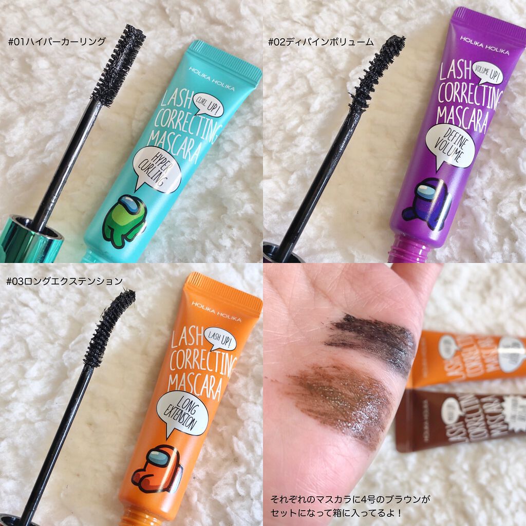 あなたはどんなまつ毛になりたい??👀✨なりたい仕上がりに合わせてマスカラを選べる😆🌸HOLIKAHOLIKAホリカホリカラッシュコレクティングマスカラ01ハイパーカーリング/02ディファインボリューム/03ロングエクステンション01のハイパー...