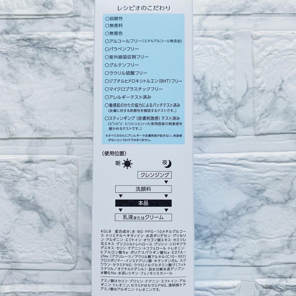 - <150ml> 水、BG、PPG-10メチルグルコース、トリエチルヘキサノイン、水添ポリデセン、グリセリン、アルギニン、エクトイン、オウゴン根エキス、カミツレ花エキス、グリコシルトレハロース、グリシン、シロキクラゲエキス、セリン、テアニン、トコフェロール、トレオニン、ヒアルロン酸Na、ポリアスパラギン酸Na、EDTA-2Na、(アクリレーツ/アクリル酸アルキル(C10-30))クロスポリマー、イソステアリン酸、キサンタンガム、スクワラン、セラミドNG、ラウロイルグルタミン酸ジ(フィトステリル/オクチルドデシル)、加水分解水添デンプン、水酸化Na、水添レシチン、フェノキシエタノール <レフィル(130mL)> 水、BG、PPG-10メチルグルコース、トリエチルヘキサノイン、水添ポリデセン、グリセリン、アルギニン、エクトイン、オウゴン根エキス、カミツレ花エキス、グリコシルトレハロース、グリシン、シロキクラゲエキス、セリン、テアニン、トコフェロール、トレオニン、ヒアルロン酸Na、ポリアスパラギン酸Na、EDTA-2Na、(アクリレーツ/アクリル酸アルキル(C10-30))クロスポリマー、イソステアリン酸、キサンタンガム、スクワラン、セラミドNG、ラウロイルグルタミン酸ジ(フィトステリル/オクチルドデシル)、加水分解水添デンプン、水酸化Na、水添レシチン、フェノキシエタノール <濃密うるおいキットa> 水、BG、PPG-10メチルグルコース、トリエチルヘキサノイン、水添ポリデセン、グリセリン、アルギニン、エクトイン、オウゴン根エキス、カミツレ花エキス、グリコシルトレハロース、グリシン、シロキクラゲエキス、セリン、テアニン、トコフェロール、トレオニン、ヒアルロン酸Na、ポリアスパラギン酸Na、EDTA-2Na、(アクリレーツ/アクリル酸アルキル(C10-30))クロスポリマー、イソステアリン酸、キサンタンガム、スクワラン、セラミドNG、ラウロイルグルタミン酸ジ(フィトステリル/オクチルドデシル)、加水分解水添デンプン、水酸化Na、水添レシチン、フェノキシエタノール