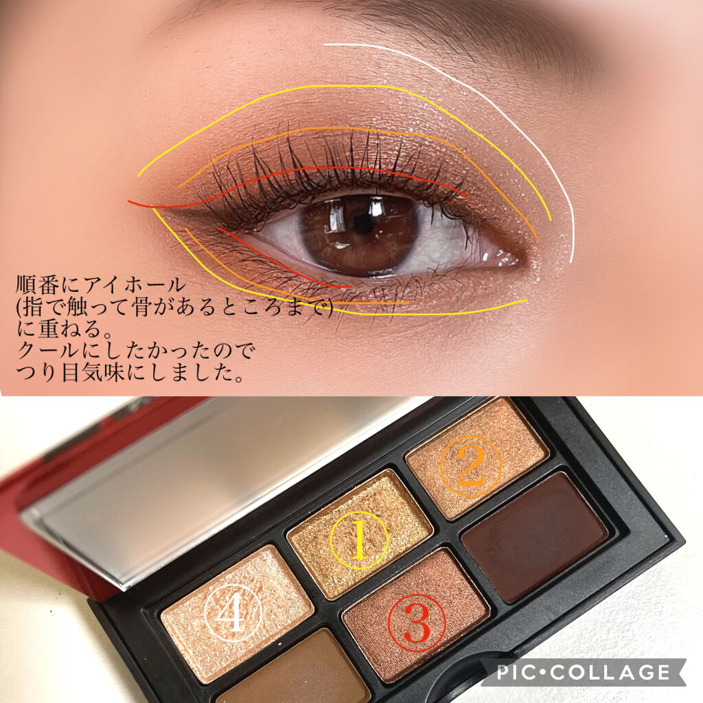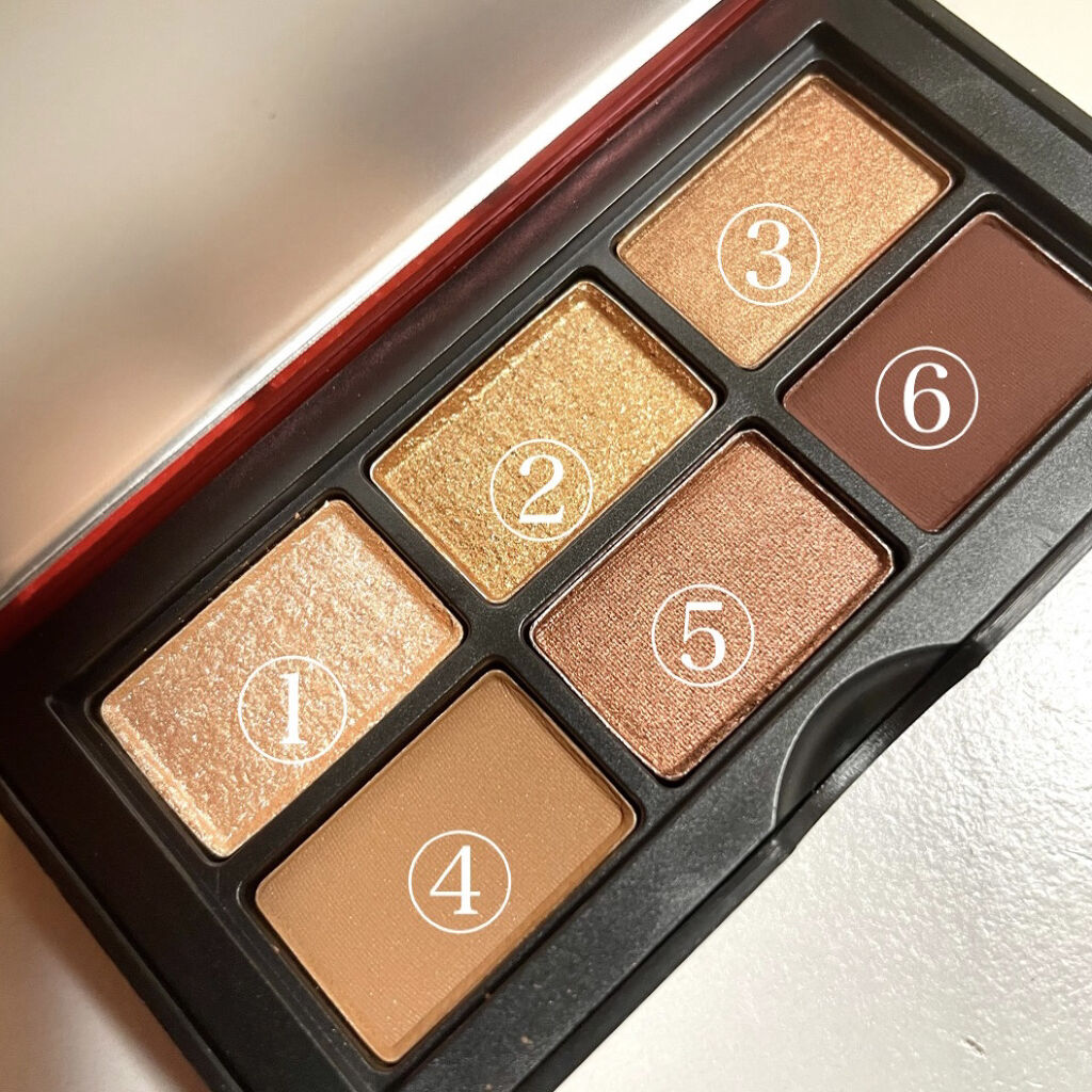 全体的に淡めです! イエベ向きな黄色みのあるブラウン系🤎 シマーなラメが可愛すぎる!! 密着度の高いラメでポンと乗せるだけで キラッキラ✨✨ 粉飛びもしないです! 発色はいいですが淡いので 初心者さんでも使いやすい!!!