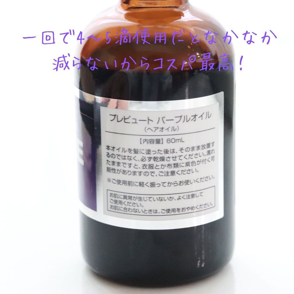 【プレビュートPBパープルオイル】💰¥1000+tax*̣̩⋆̩商品特徴*̣̩⋆̩紫オイルが、傷んで黄ばんだ髪を艶髪コーティング✨●こめ油ベースの紫色のヘアオイル●紫の補色効果で、くすんで黄ばんだ髪が『365日』サロンコンディション●ヘアーダ...
