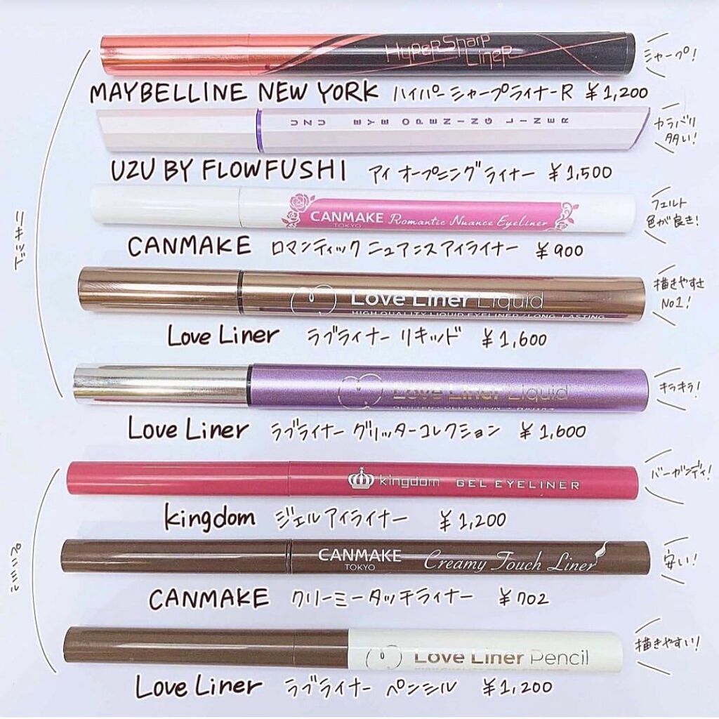 \初心者さん向け!/【アイラインの引き方まとめ】アイラインの基本的なまとめとおすすめアイテムのレビューになります!♡MaybellineNewYorkハイパーシャープライナーR1,200円ほかのと比べてペン先が細めでシャープに仕上がります!ピ...