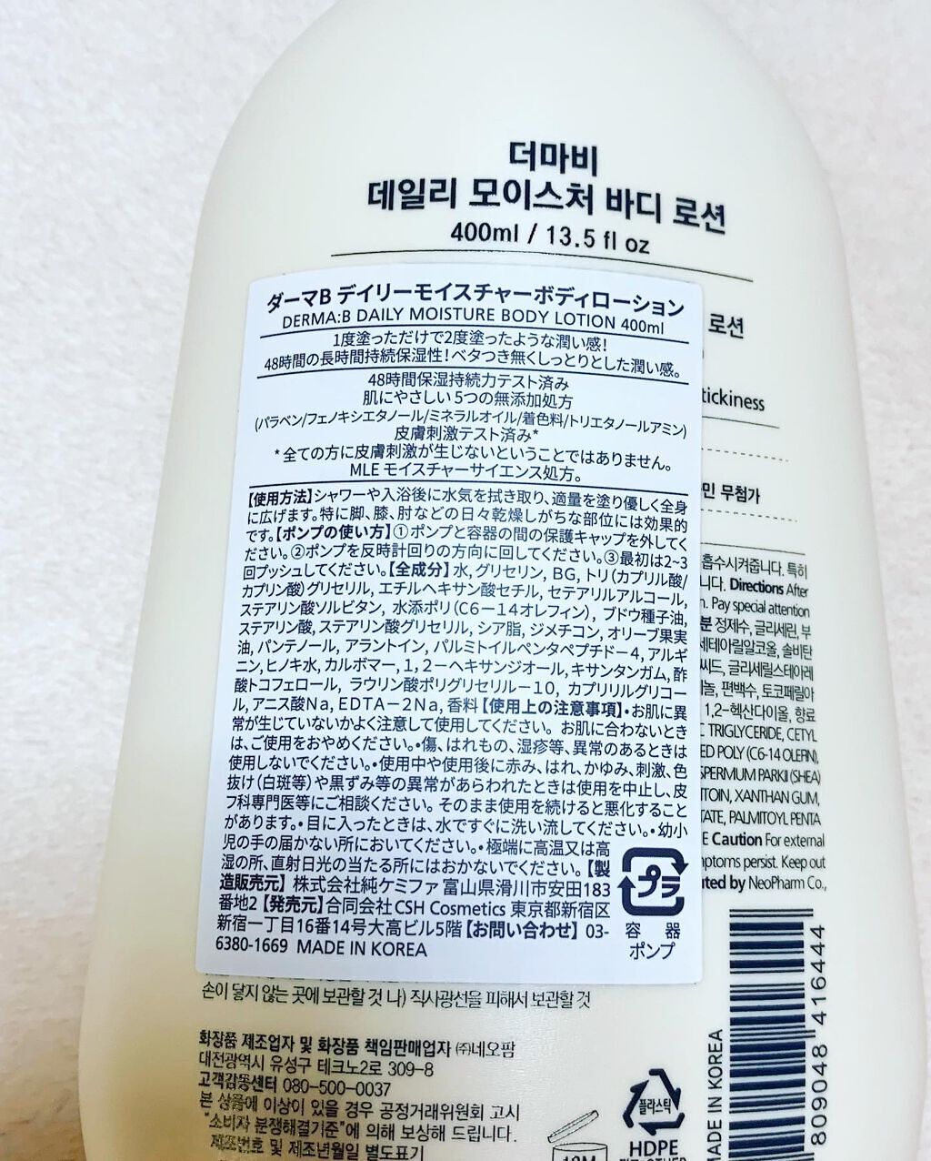 商品詳細情報Derma:B デイリーモイスチャーボディローション