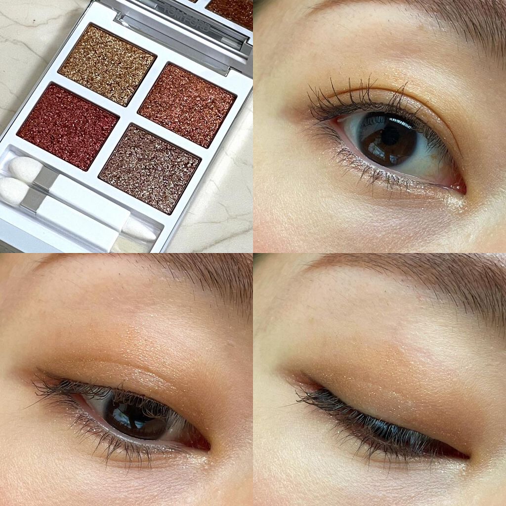 SUQQUは裏切らない‼️📣 ラメがキランキランなのに上品で、 マットブラウンは使いやすくてもう言う事ない💁♀️ 右上のブルーは目頭のくぼみと 目頭側に虹をかけるように入れました🌈 イエベでも使える青ラメ最高🥰