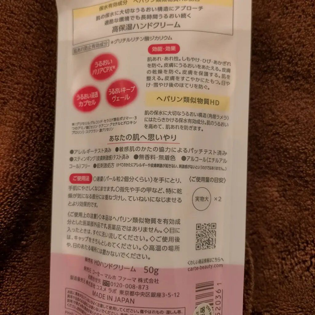 - 【高保湿ハンドクリーム】 硬くあれがちな肌もふっくらうるおいに満ちた美しい手肌へ。信頼の保水有効成分「ヘパリン類似物質HD※」をコーセーグループにおいて初めて配合した低刺激処方の高機能ハンドクリームです。ヘパリン類似物質HDが、過酷な環境にさらされ続けることで壊れやすい手肌のうるおい構造を立て直し、内側からのプロテクト機能をパワフルに強化。うるおいキープヴェールが、肌の表面をしなやかな保護膜でおおって、外側からもしっかりガード。手肌表面を守るだけでなく、外部刺激に負けにくくします。なめらかなクリームは、硬くごわついた手肌をほぐすようになじんで、ベタつかずしっとりやわらかなあと肌に。手あれスパイラルを断ち切り、ふっくら手肌を叶えます。 ※ヘパリン類似物質のこと <販売名:HDハンドクリーム>
