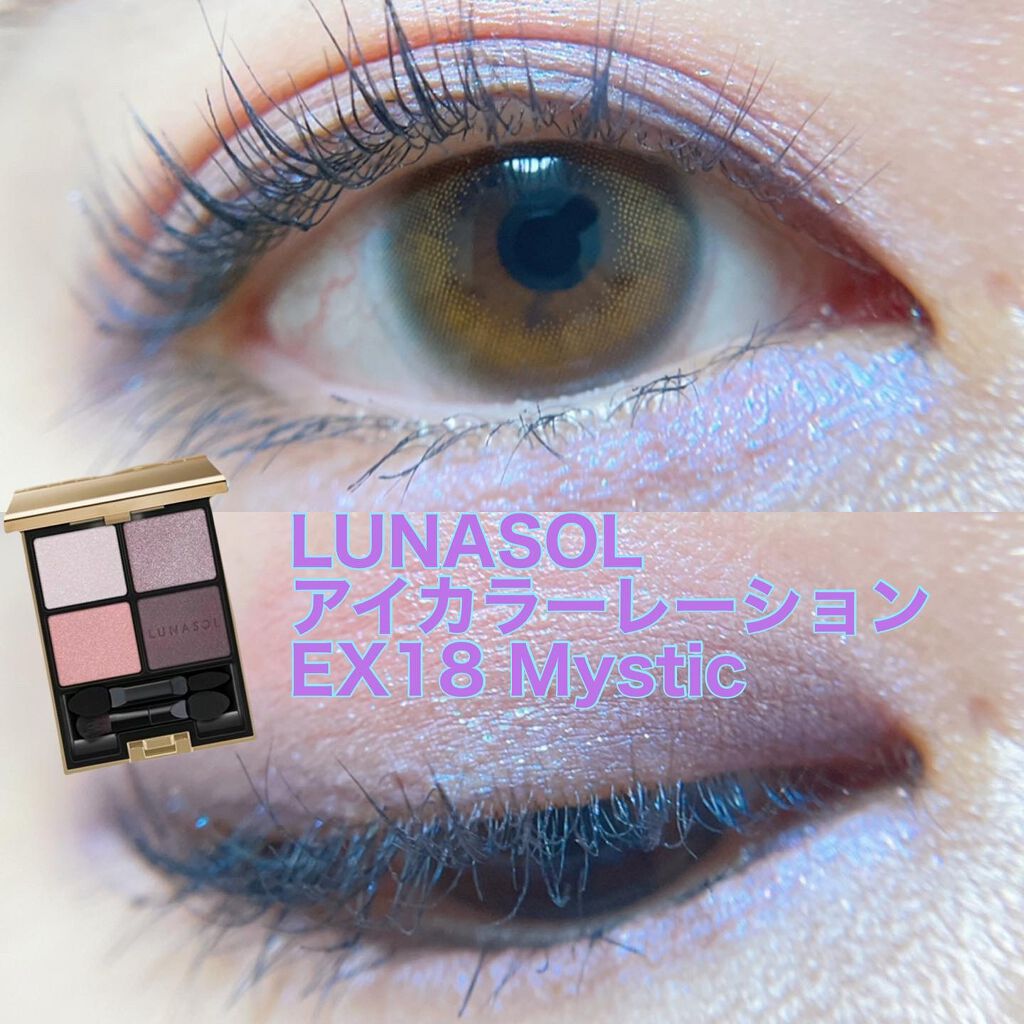 LUNASOLアイカラーレーションEX27MysticAurora⭐️2022年11月18日発売⭐️#ひかるんからのクリスマスプレゼント🎄🎅🎁ありがとう😭🩷パープルの配色が最高に可愛いパレット꒰ᐡ•͈⤚•͈ᐡ꒱♡1⃣右下ブラウンをベースに✨...