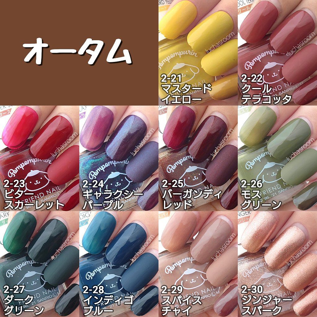 ⚠️更新版投稿しました⚠️こちらのハッシュタグからとべます▶#カラーチャートluchasroom完全保存版‼️ダイソーでネイルポリッシュを買うときに必携!ダイソーの3大ネイルポリッシュ、GENEネイル、フレンドネイル、ソンプチューの全色カラー...
