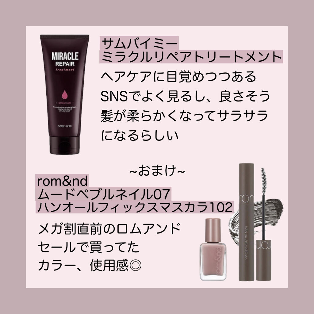 | 使用後の指通りがサラサラで、しっかりツヤも残してくれるのでお気に入りです♡ | 詳細を見る | ||