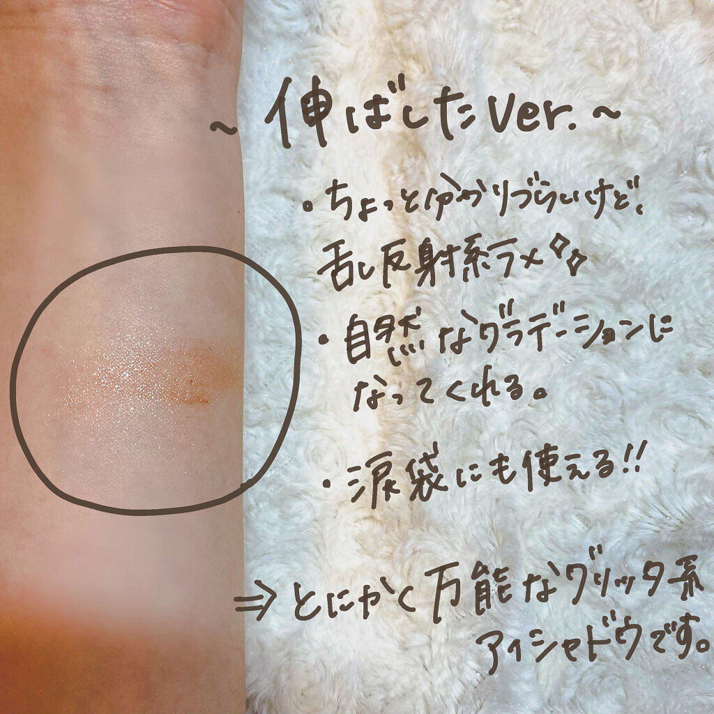 | リキッドアイシャドウランキング第9位 | 塗る時のコツは手早く伸ばすこと。塗り広げるとじゅわっと滲み出るような発色でかわいいです。 | 詳細を見る |