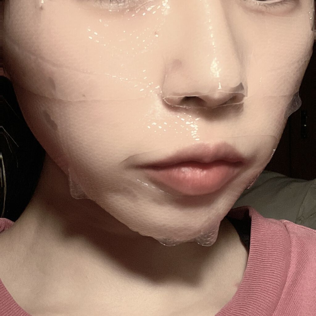 | シワも出来ずにぴたーっと密着。顔との一体感がすごい!そして液がヒタヒタなのに垂れてこない! | 詳細を見る | ||