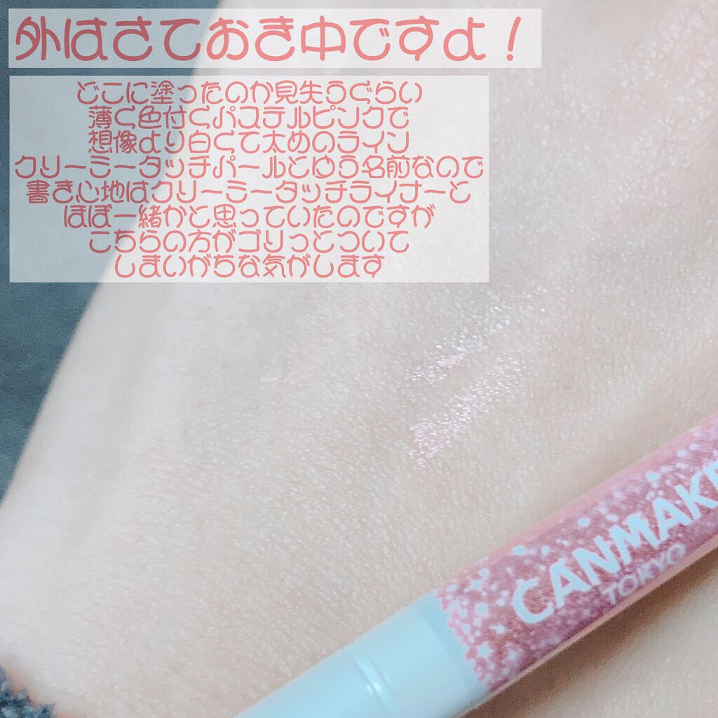 キャンメイククリーミータッチパール01:ブライダルホワイトしっかり輝くホワイト。02:ホリデーベージュ控えめベージュ。03:デートピンク可愛く見せたい日の勝負ピンク。少し折れやすいのでコスパは悪いかなと感じました。ギラギラしすぎないので可愛か...