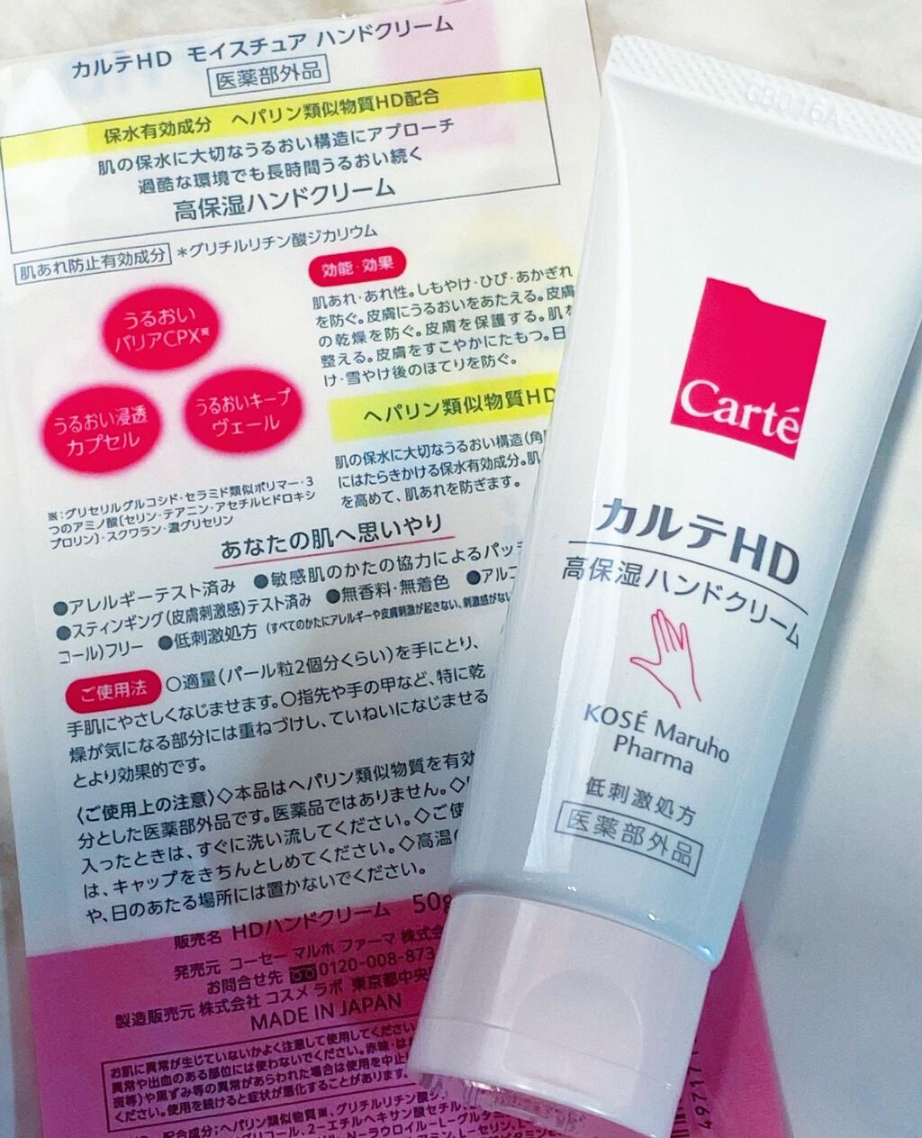 - 【高保湿ハンドクリーム】 硬くあれがちな肌もふっくらうるおいに満ちた美しい手肌へ。信頼の保水有効成分「ヘパリン類似物質HD※」をコーセーグループにおいて初めて配合した低刺激処方の高機能ハンドクリームです。ヘパリン類似物質HDが、過酷な環境にさらされ続けることで壊れやすい手肌のうるおい構造を立て直し、内側からのプロテクト機能をパワフルに強化。うるおいキープヴェールが、肌の表面をしなやかな保護膜でおおって、外側からもしっかりガード。手肌表面を守るだけでなく、外部刺激に負けにくくします。なめらかなクリームは、硬くごわついた手肌をほぐすようになじんで、ベタつかずしっとりやわらかなあと肌に。手あれスパイラルを断ち切り、ふっくら手肌を叶えます。 ※ヘパリン類似物質のこと <販売名:HDハンドクリーム>