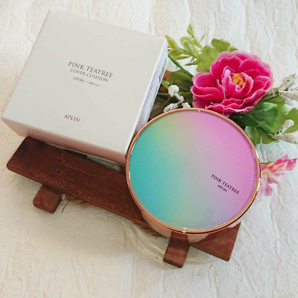APLIN ピンクティーツリーカバークッション 21号ライトベージュ 2,490円(税込) 少量でよく伸びてハイカバー! 赤みやくすみをしっかりカバ一できるのに、厚塗り感のないなめらかな仕上がり♡ ハイカバーなのにナチュラルなツヤ感とサラッとしつつ、乾燥崩れしにくい仕上がりに感動します!!