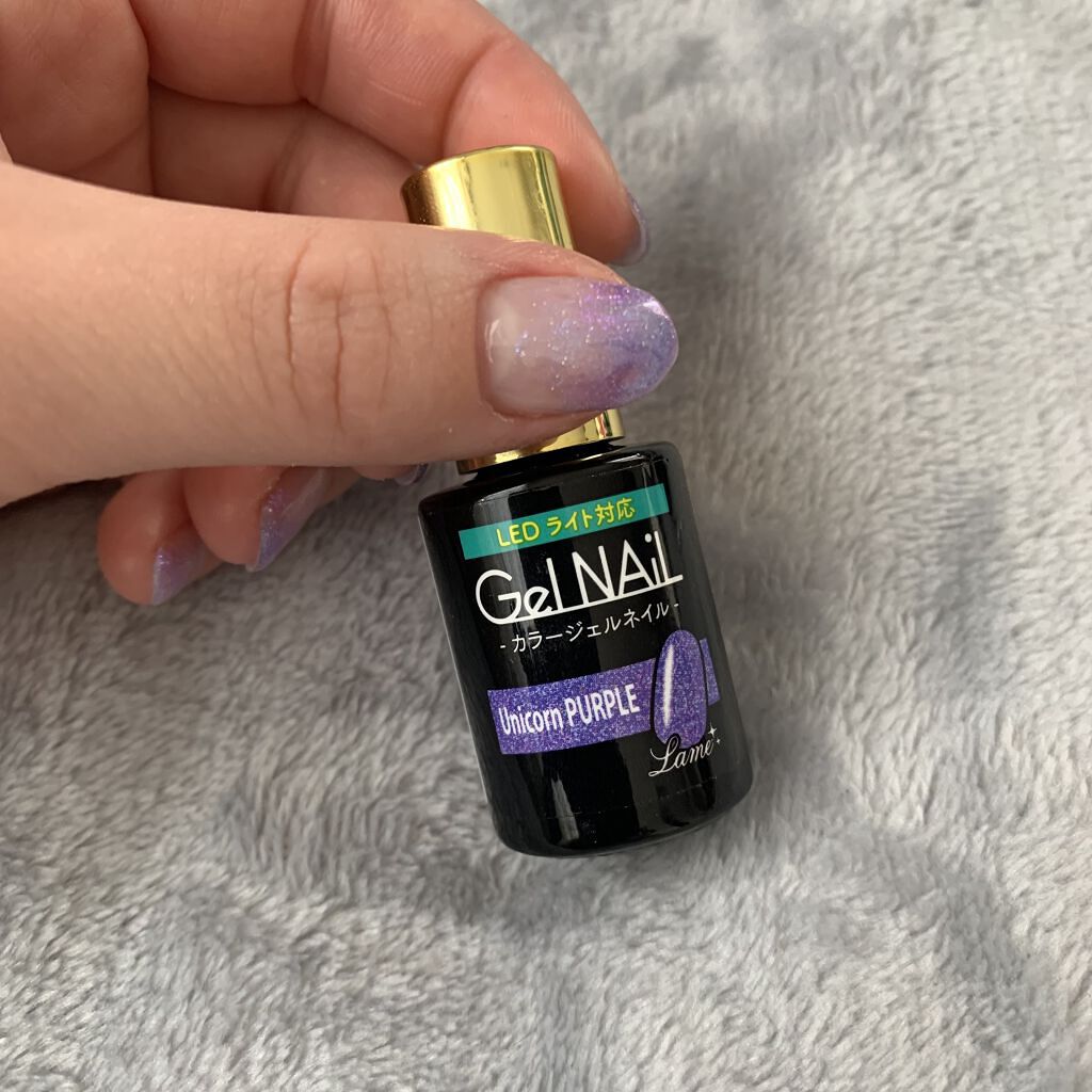 透け感のあるパープルカラーがベースのマグネットジェルです。くすみ系のカラー。透け感あり。 チップはどちらも2度塗りですが塗布量の差でかなり濃さに違いが出ています。 セリアに行ったらまだ売っていたので買ってしまいました😂