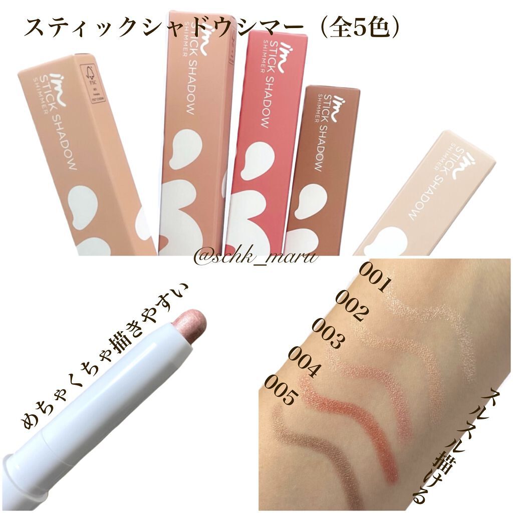 - <001 スウィートピンク> タルク、マイカ、グンジョウ、トリ(カプリル酸/カプリン酸)グリセリル、シリカ、窒化ホウ素、ステアロイルオキシステアリン酸オクチルドデシル、メチルプロパンジオール、ミリスチン酸Mg、マンガンバイオレット、ジメチコン、ミネラルオイル、プロパンジオール、赤酸化鉄、ヒドロキシプロピルビスパルミタミドMEA、ステアリン酸ジメチコノール、黄酸化鉄、ステアリン酸Mg、黒酸化鉄、トリエトキシカプリリルシラン、酸化チタン、メチコン、水 <002 ハローピーチ> マイカ、タルク、ホウケイ酸(Ca/Al)、酸化チタン、シリカ、ジエチルヘキサン酸ネオペンチルグリコール、フェニルトリメチコン、赤酸化鉄、グンジョウ、リンゴ酸ジイソステアリル、ヘキサ(ヒドロキシステアリン酸/ステアリン酸/ロジン酸)ジペンタエリスリチル、ネオペンタン酸イソステアリル、ステアロイルオキシステアリン酸オクチルドデシル、ミリスチン酸Mg、マンガンバイオレット、メチルプロパンジオール、ジメチコン、マカデミア種子油、ポリブテン、ステアリン酸Mg、プロパンジオール、トリエトキシカプリリルシラン、酸化スズ、メチコン、水 <003 ベイクド ジンジャー> タルク、マイカ、グンジョウ、シリカ、マンガンバイオレット、酸化チタン、トリ(カプリル酸/カプリン酸)グリセリル、赤酸化鉄、窒化ホウ素、黄酸化鉄、黒酸化鉄、ミリスチン酸Mg、ミネラルオイル、ステアロイルオキシステアリン酸オクチルドデシル、メチルプロパンジオール、ジメチコン、プロパンジオール、黄色4号、ヒドロキシプロピルビスパルミタミドMEA、ステアリン酸ジメチコノール、ステアリン酸Mg、トリエトキシカプリリルシラン、水 <004 グラムローズ> ホウケイ酸(Ca/Al)、タルク、ホウケイ酸(Ca/チタン)、マイカ、ジエチルヘキサン酸ネオペンチルグリコール、酸化チタン、フェニルトリメチコン、シリカ、ミリスチン酸Mg、リンゴ酸ジイソステアリル、ヘキサ(ヒドロキシステアリン酸/ステアリン酸/ロジン酸)ジペンタエリスリチル、ネオペンタン酸イソステアリル、ステアロイルオキシステアリン酸オクチルドデシル、グンジョウ、ステアリン酸Mg、メタクリル酸メチルクロスポリマー、メチルプロパンジオール、ポリブテン、プロパンジオール、酸化スズ、ジメチコン、ラウロイルリシン、マンガンバイオレット、赤酸化鉄、トリエトキシカプリリルシラン、黄酸化鉄、メチコン、水