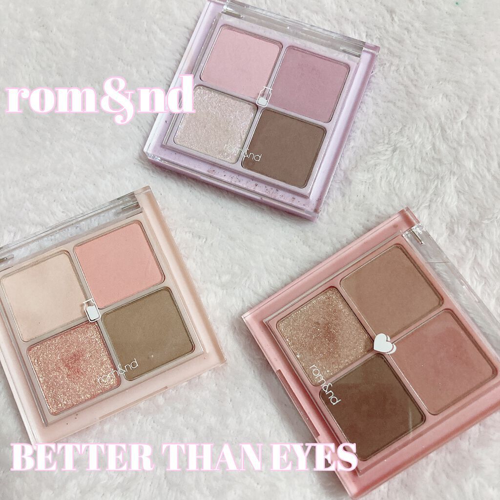 rom&ndベターザンアイズミルクシリーズドライラベンダー最近この色味が好きで😌つい買ってしまいました。特に左下のグリッターが可愛い😍ベターザンアイズいろいろ種類でてるから気になります。#rom&nd#ベターザンアイズ...