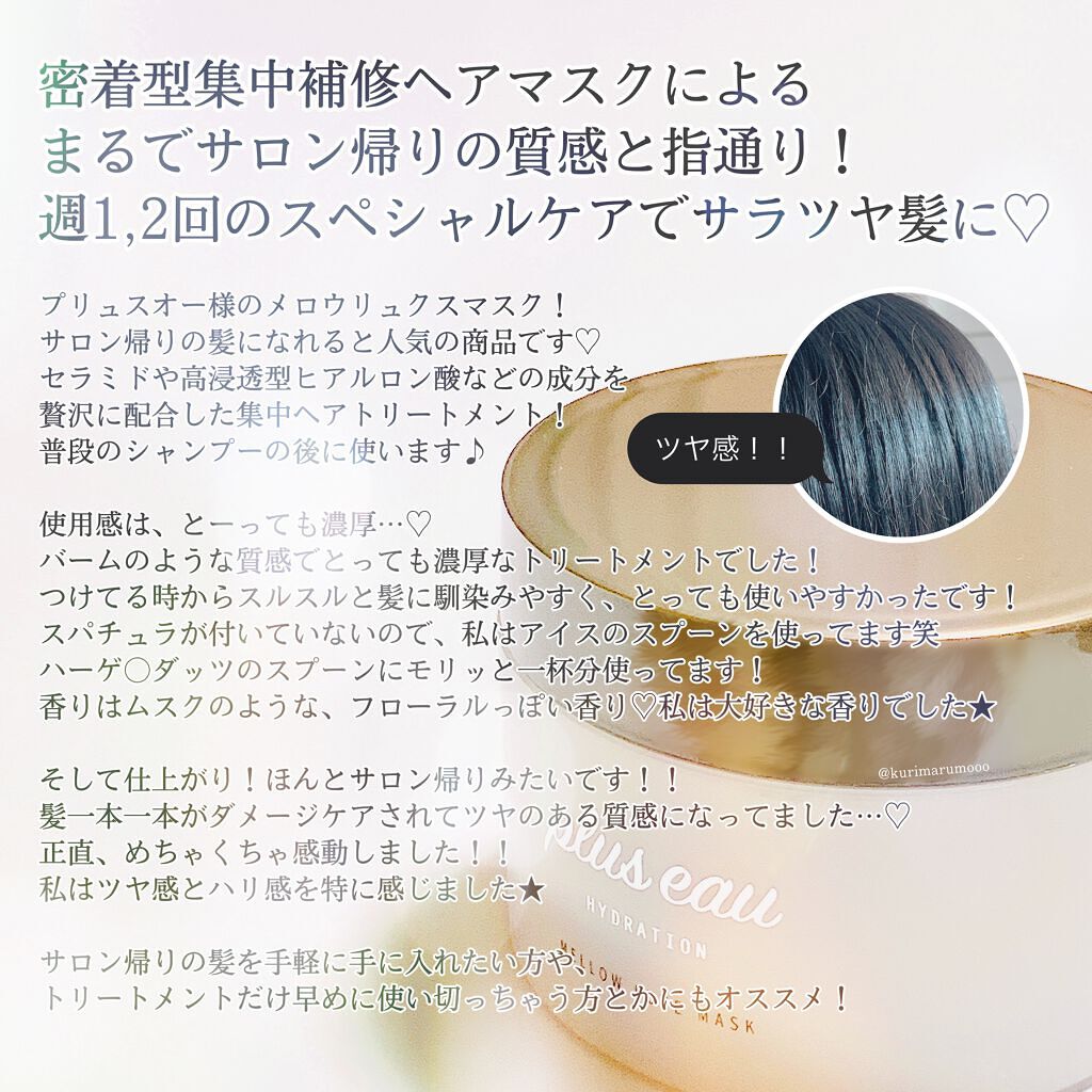商品詳細情報plus eau プリュスオー メロウリュクスマスク ジャータイプ