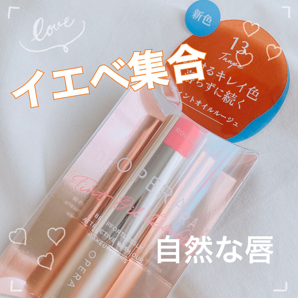 オペラ リップティントN 13トープ 最近暗髪にしてブラウンメイクをよくするのでトープを選択︎⸜❤︎⸝ こちらはオレンジ強めのブラウン! 美容オイルが入っているからか、するすると塗れてオイル感があって保湿リップしなくても1本でツヤツヤに✨️ 色持ちとツヤ感はめっちゃいいです◎ 濃すぎず薄すぎなくてムラになりにくいから塗り直ししやすいのもオススメ♡
