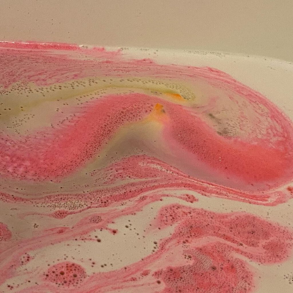 LUSHのバスボムって子供が楽しいかなと思って買ってきました。 案の定楽しんでくれてて全部溶け切って泡も無くなったらブラッドオレンジみたいなカラーにキラキラが沢山入ってて可愛かった♡ 桃やのにピンクちゃうんかいとは思ったけど笑