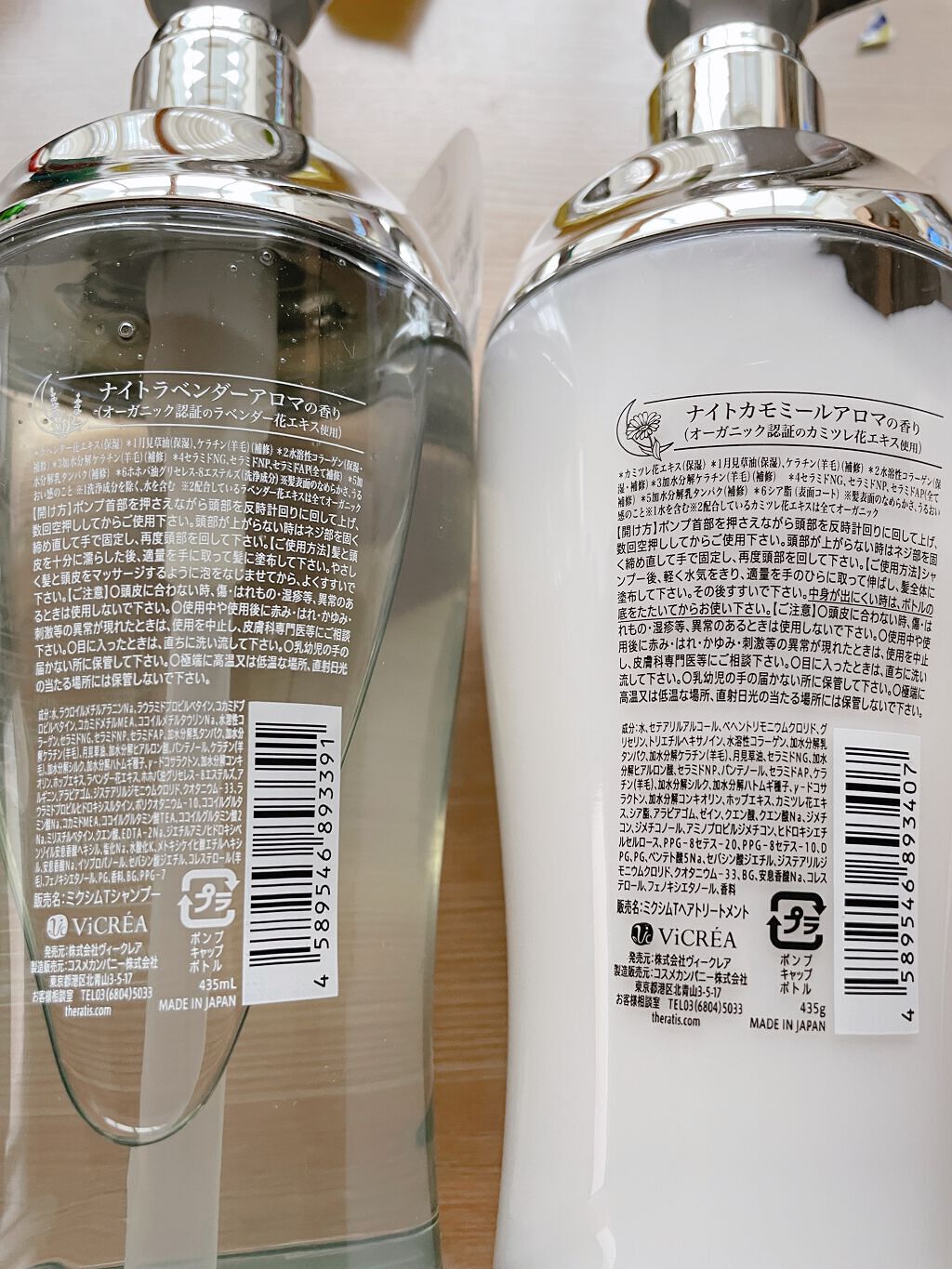 - ”寝ている間”に補修成分がしみ込み、うねり・寝ぐせを抑制する新ナイトリペアヘアケア。90%以上が美容液成分。 シャンプー:ラベンダー原料使用。ホホバオイル由来の洗浄成分でやさしく潤いを残しながら洗い上げます。ナイトラベンダーアロマの香り。ノンシリコンシャンプーです。 トリートメント:カモミール原料使用。補修成分が毛先まで包み込み潤いを与えます。ナイトカモミールアロマの香り。 石油系界面活性剤・合成着色料・ラウレス硫酸Na・パラベン・動物実験フリー処方
