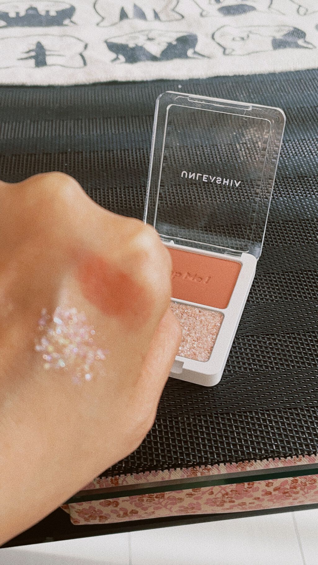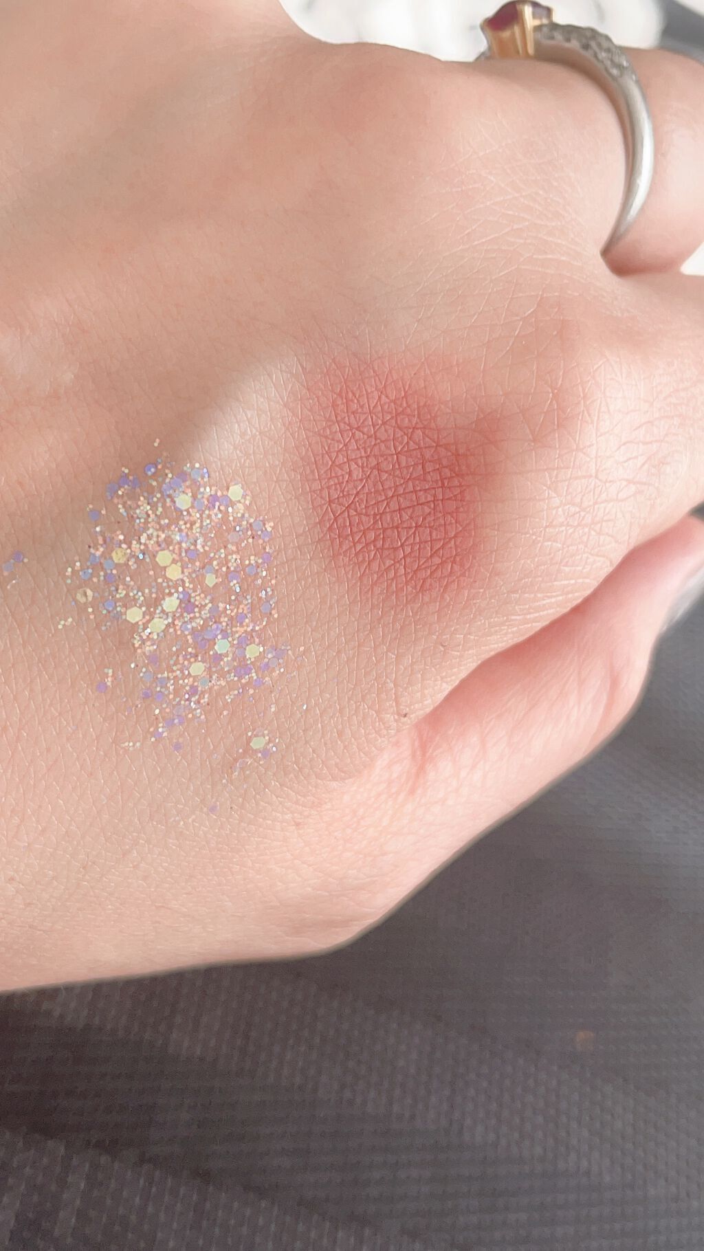 マットカラーとグリッターラメの2色デュオアイパレット🎨 ピンクブラウンのマットカラーは高発色でアイシャドウですがチークとしても使えそうなカラー🩷 ピンク・ゴールド・ブルーのバーム状のグリッターラメはまぶたに塗布するとピタッと密着! 春メイクで映えそうな色展開🌸