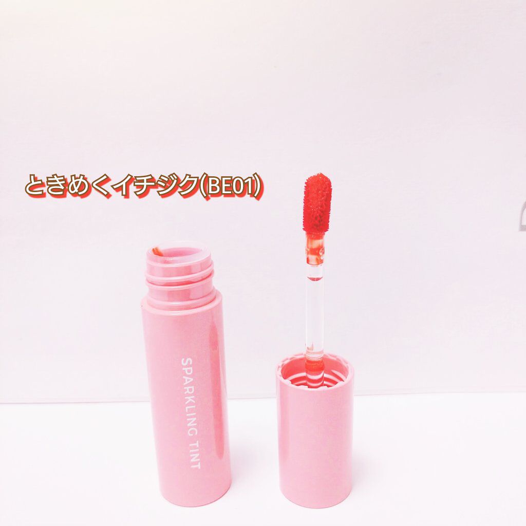 ラメがめちゃくちゃ可愛いA’pieuのジューシーパン スパークリングティント。BE01のときめくイチジクはベースがベージュ系のナチュラルカラーでゴールドやホワイト系のラメが入っています! 普段から濃いめのリップが好きな方は物足りないと感じると思うので、こちらを全体的に塗った上に内側に濃いめのリップ塗ってもとても可愛く仕上がります🫶🏻 ティント効果もあって、ティッシュオフするとツヤ感は失われるものの色とラメはしっかり残ります!