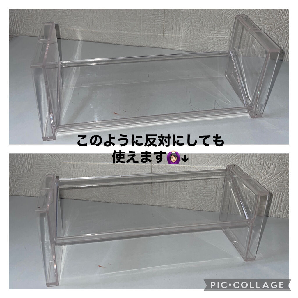 コスメかなり厳選して必要なもの、好きなものだけにしてるのですごくコンパクトに収まってる🤭 ▶︎DAISO 3段式クリアーケース ¥220 薄めなので、厚さがあるものは入らない。 プチプラの薄めのアイシャドウとかは2個重ねてちょうど入るくらい。 ▶︎DAISOボトルスタンド 縦に重ねることもできる飾る用のスタンド。 パケ可愛いコスメを飾るのにとてもいい。
