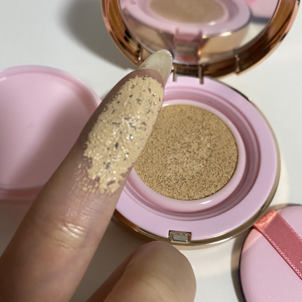 ぴたりと密着して私の肌になる、瞬間フィルター肌へ! 強力密着クッションファンデーション。 伸びが良く、赤み、くすみ、ニキビ跡など気になる部分も少量でカバーしてくれます。 こだわりのしずく型パフが塗りやすい! 高密着だから崩れにくい◎ 高カバーでセミマット仕上がりでとっても綺麗な仕上がり。 1番ヘビロテしてる01はピンクみのあるベージュで明るくてばっちりだった! さすがふくれなちゃん!と思うほどクオリティ高かったよ☺️