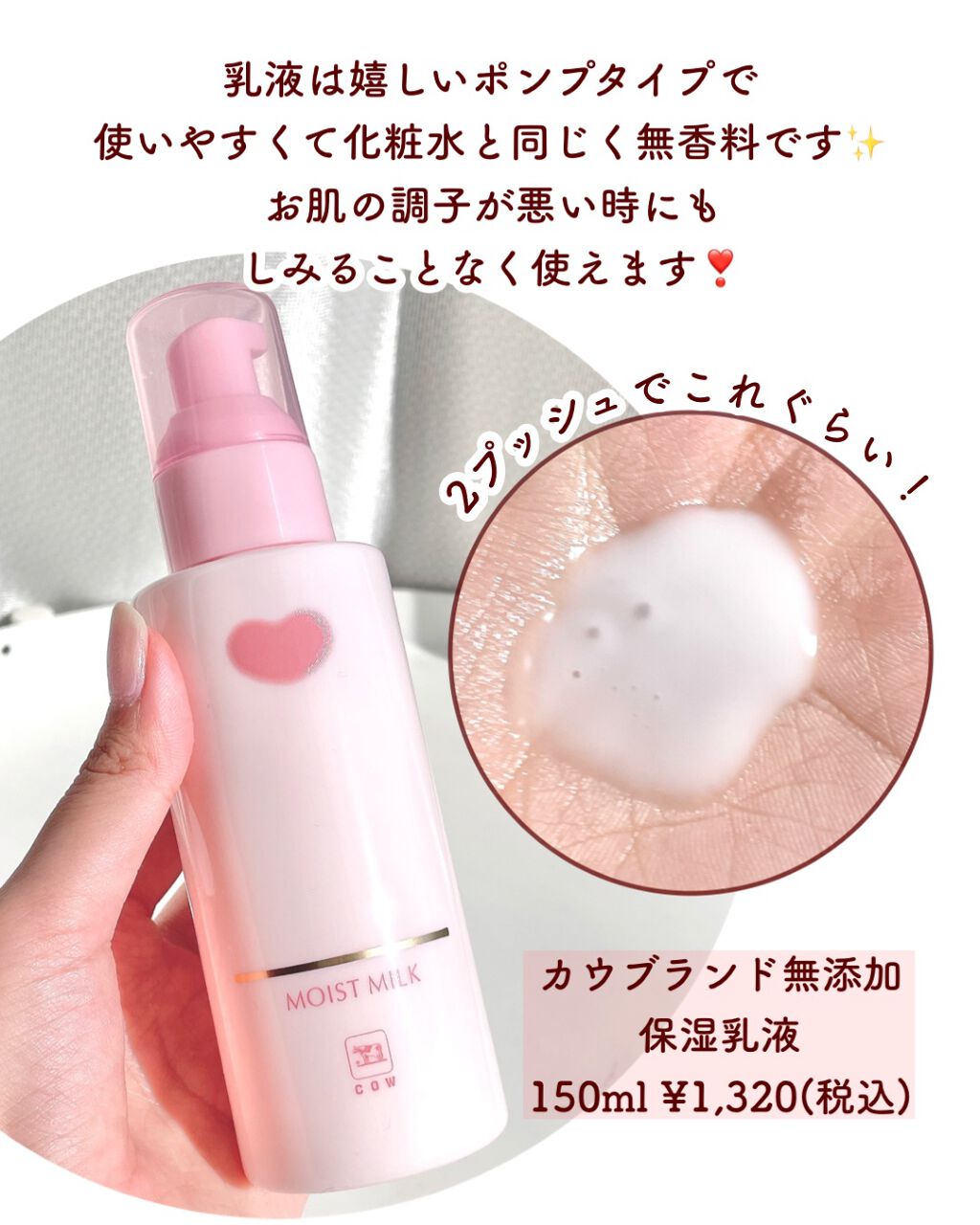 赤箱で有名な牛乳石鹸の会社から出ている「カウブランド無添加」のスキンケアシリーズ。 素肌由来保湿成分<セラミド、ヒアルロン酸、アミノ酸(グリシン)>配合✨ しっとりするのにべたつかない、リッチな使いごこち🫧
