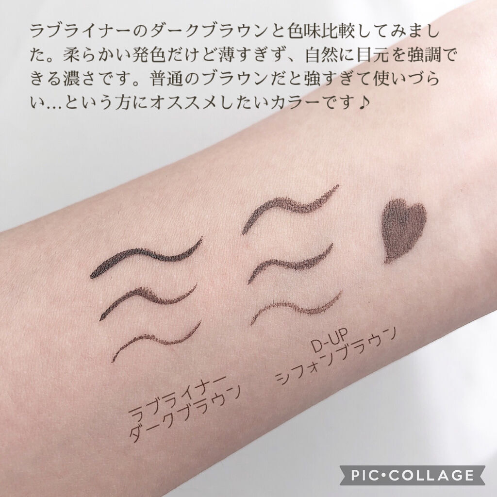 なめらかな書き心地で発色も良く、ブレずに描きやすい! パケに結構重さがあるので、安定してラインを引きやすいのが特徴です👌 めちゃくちゃ可愛かった〜!🥺 名前の通りミルクを加えたような、まろやかで優しい色味のブラウンです。 しっかり描いてもアイラインがっつり引いてます感が出ないので、ナチュラルに仕上げたい方にオススメです! 透け感があるので重たい印象にならなくて、ふんわり優しい雰囲気のアイメイクになります🕊𓈒𓏸◌ 発色が淡くて肌なじみが良いのではみ出してもわかりにくくて、適当にササッと引いても割と綺麗に仕上がる😂 ラブライナーは色素沈着しにくい顔料タイプなので、落とす時もストレスフリーでお気に入りです♪ 今回試しに眉毛もこのアイライナーで描いてみたんですが、発色淡めのなので意外と馴染んだ気がする…😂 個人的に結構お気に入りのアイライナー(兼アイブロウペンシル?笑)になりそう😳笑