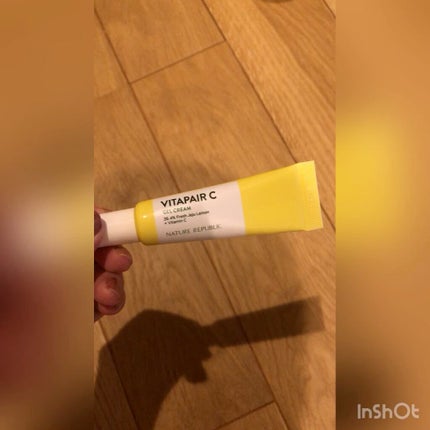 ネイチャーリパブリックのビタペアC ダークスポットクリーム! こちらはジェルってかんじで中に黄色いつぶつぶが入ってます。 べたつかないのと、柑橘系の爽やかな香りが推しポイントです!