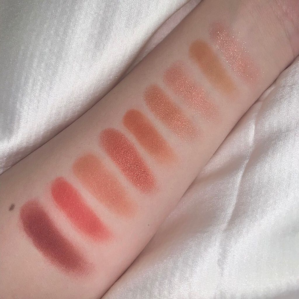 - ロマンチックに染まる、優雅な夕焼けEYE♡鮮やかに色づく紅葉のように、温かみのあるレッドブラウンカラーの9色アイシャドウパレット。