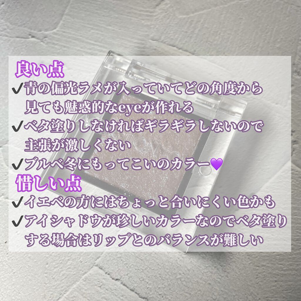 | 単色アイシャドウランキング第5位 | 高密度の多色ラメとクリアパープルが繊細に輝いて、目もとが一気に華やぐ印象でした💎 | 詳細を見る |