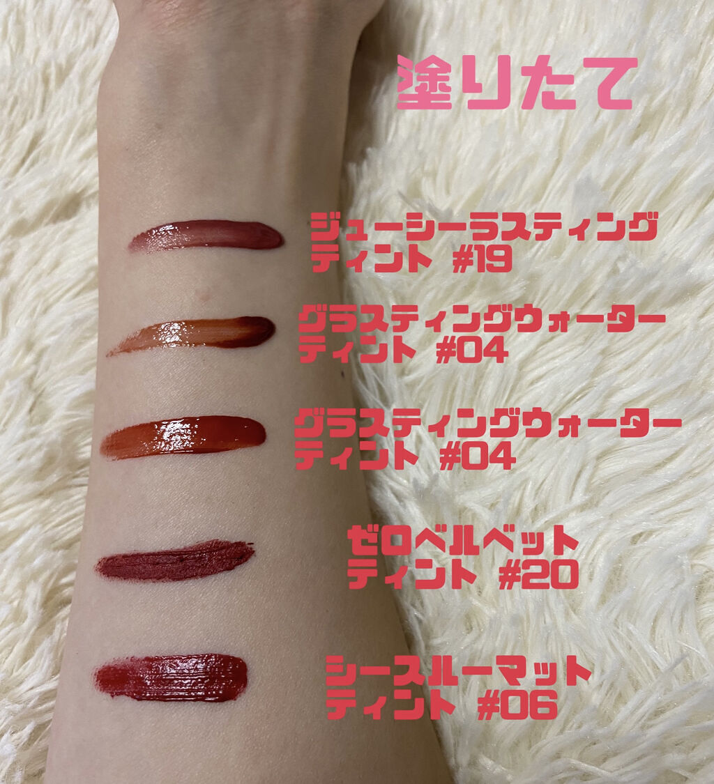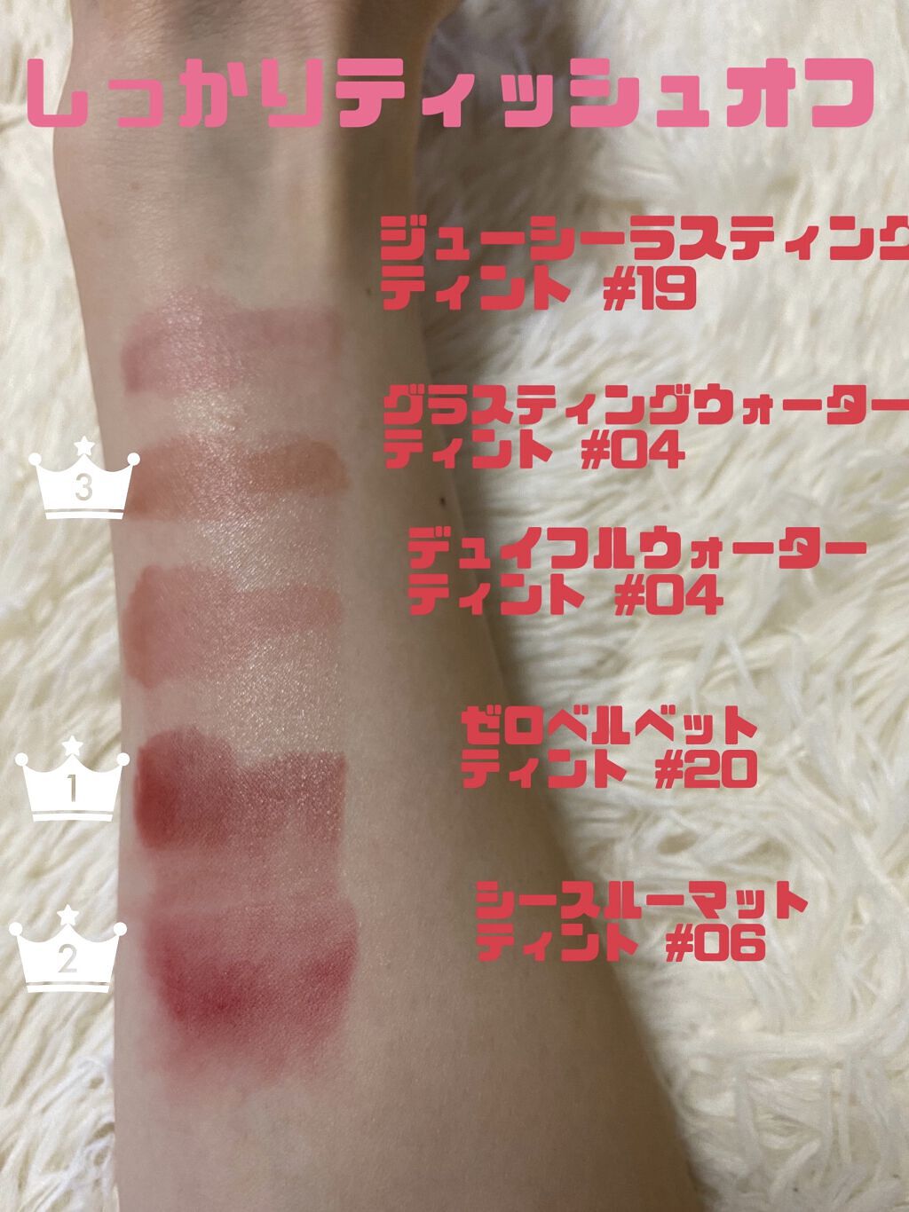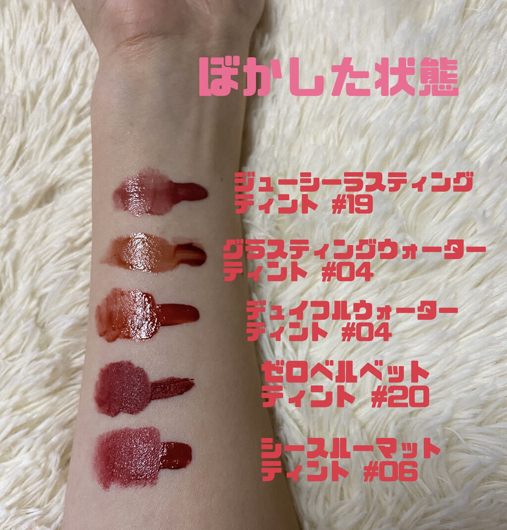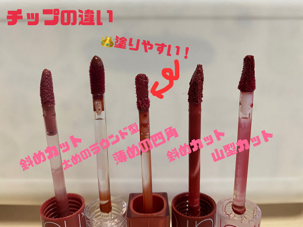 わたし的に唇に塗りやすかったのはデュイフルウォーターティントでした!! つけ心地がいいなと思ったのはジューシーラスティングティントでした!軽すぎず重すぎず、ちょうどいいテクスチャー✨ わたし的にいい香りだなと思ったのはデュイフルウォーターティントでした♡唇に乗せても不快感なく、もはやいい香り☺️ 落ちにくさNo.1はゼロベルベットティントかなと思います🙆♀️✨